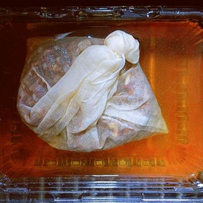 1、1⃣️、卤料包里,将布袋里的卤料放入冷水中浸泡30分钟,辅料放一边备用。
