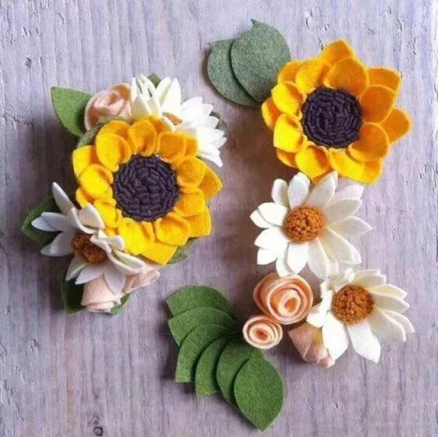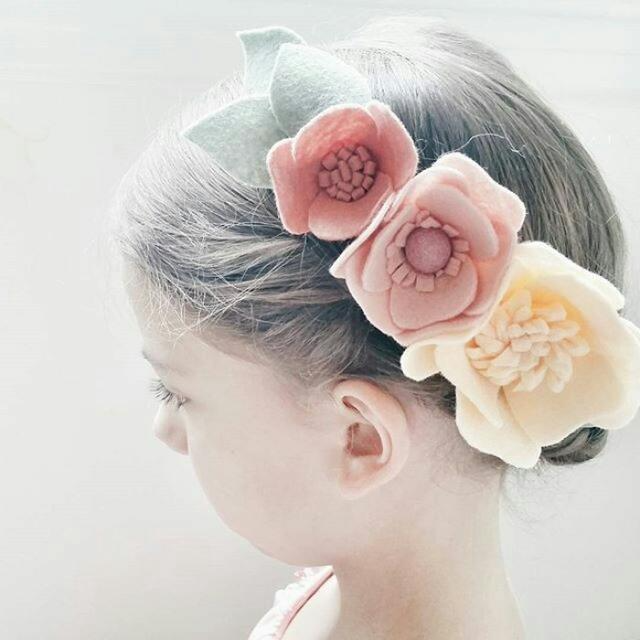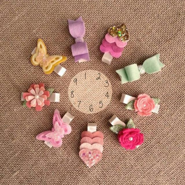 看看上图这两个小女孩,头上带着不织布花朵造型的发卡,是多么多么的漂亮可爱啊。如果你有小宝宝,也可以给她做上几只不同的发卡,每天都能换着戴,那该是一件多么美好的事情啊。