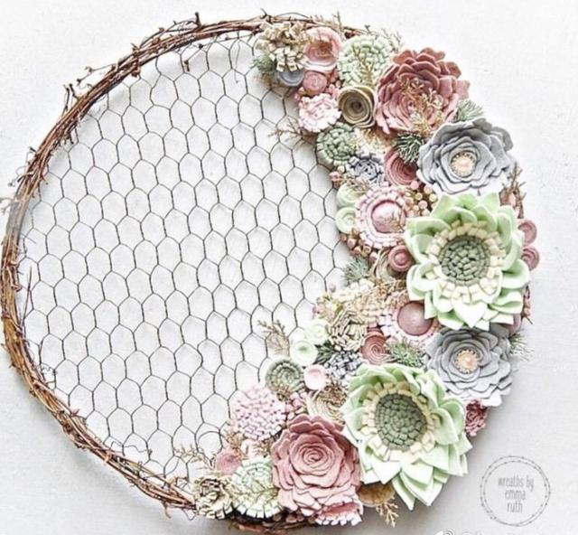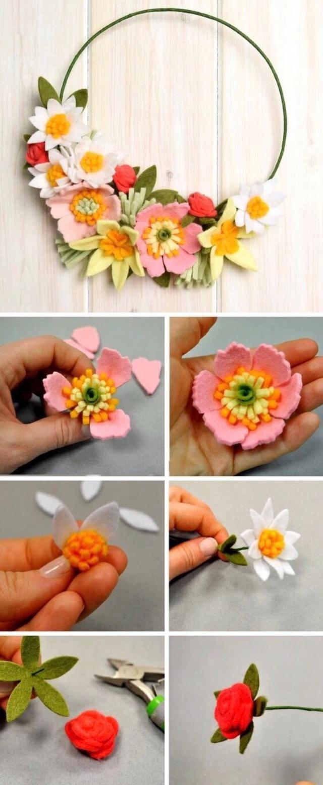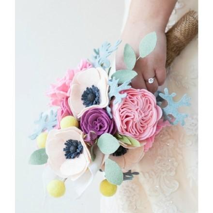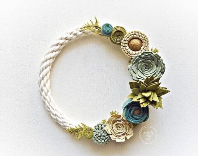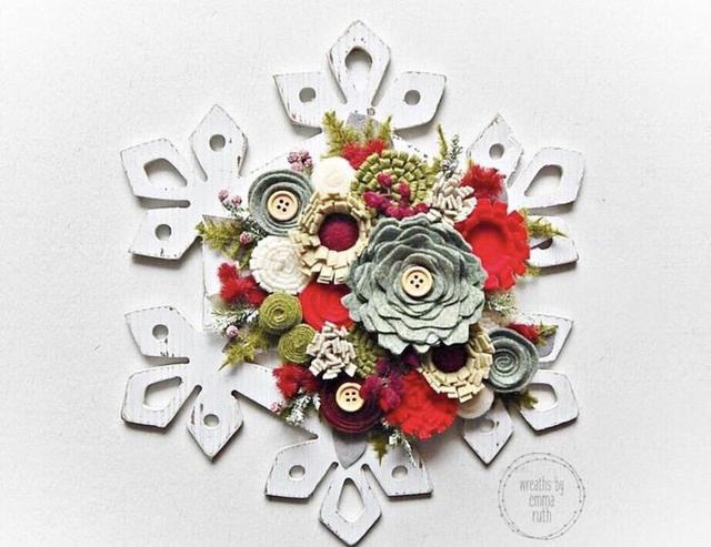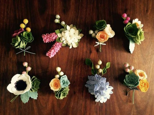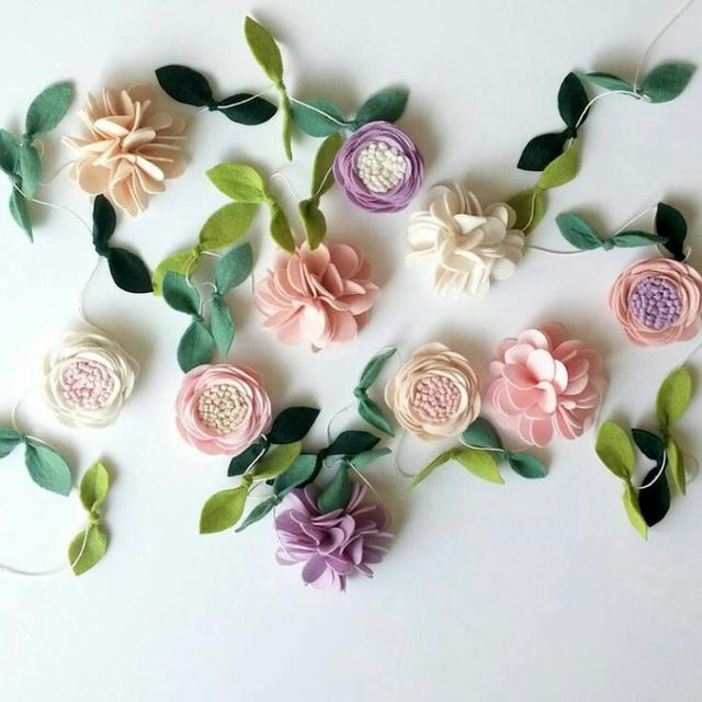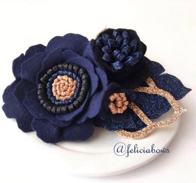 只要变换一下单个花瓣的形状,做出来的花朵就不一样了。同样是用针线穿缝,上图做出来的就是四瓣小花花了。