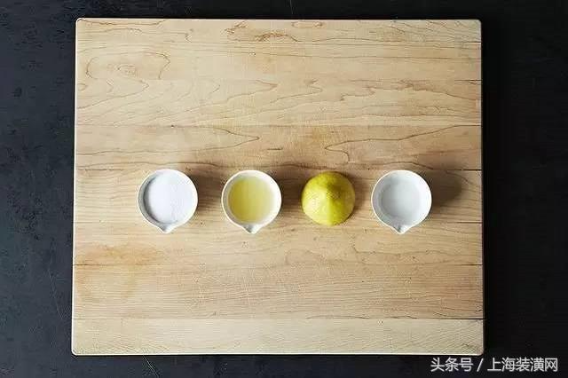 清洁的时候,先在砧板上撒一些细盐,切一块柠檬,切面朝下,用柠檬来擦拭砧板,柠檬中的酸和盐组合起来能够起到消毒的作用,也能去掉污色和异味。最后使用洗洁精和清水进行清洗。