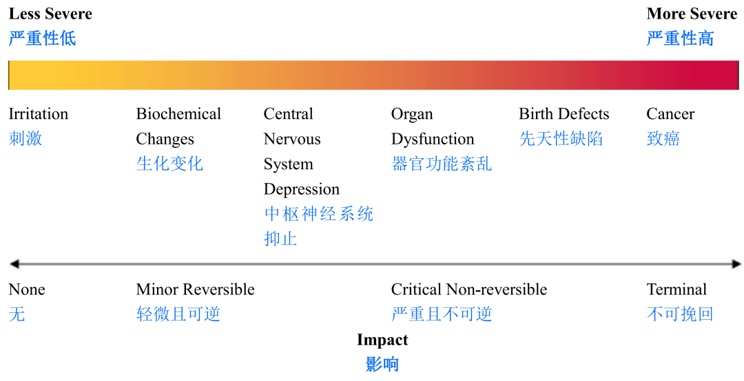 在清洁程序中最重要的危害之一是待清洁的污染类型。如图3.3所示,某些化学药品和活性物质对患者的风险较低,而有些则较高。