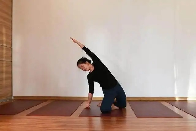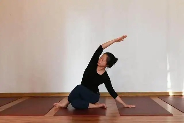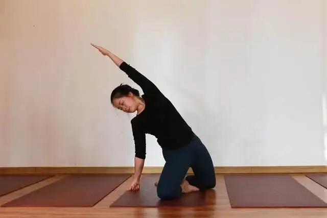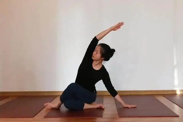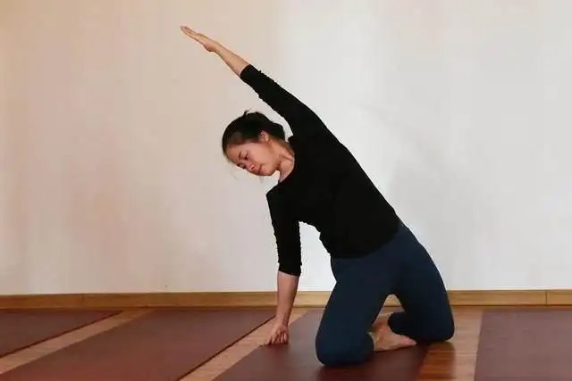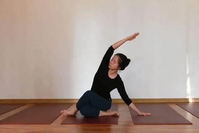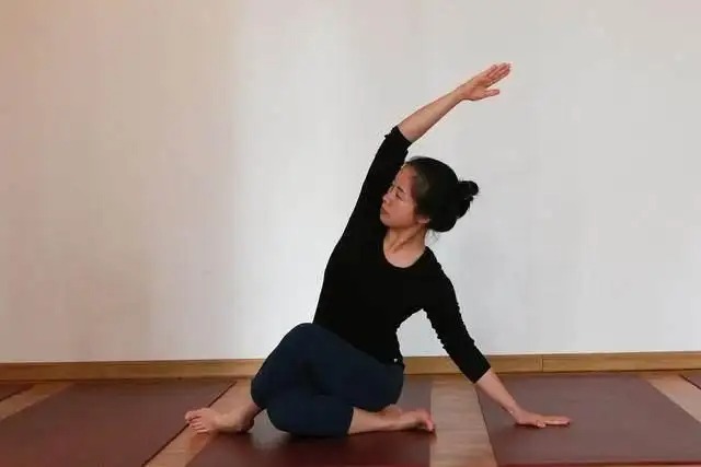 这是一个做起来很舒服的体式,你会感觉到身体前侧和左右两侧的打开,以及内心的满足感和欢愉感。