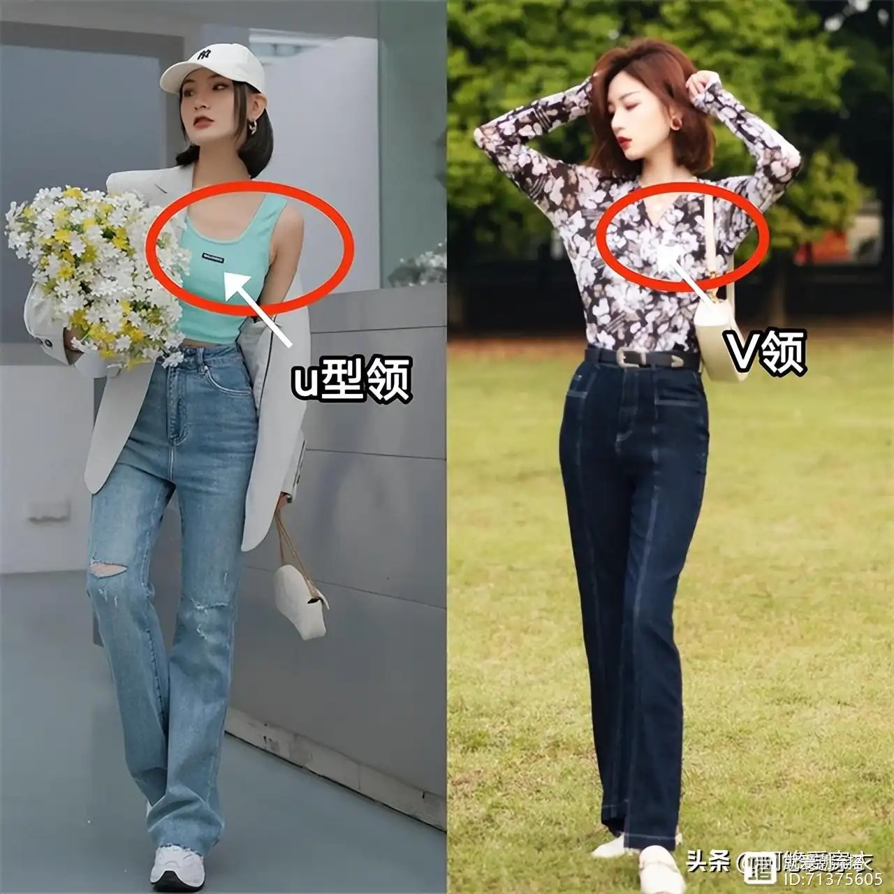 要是你脸宽脸圆脖子粗,那就选择纵宽>横宽的大领口上衣;若是脸部瘦长,脖子纤细或者有明显的窄肩溜肩问题,那就选择挂脖或井字形上衣,以及横宽>纵宽的上衣。