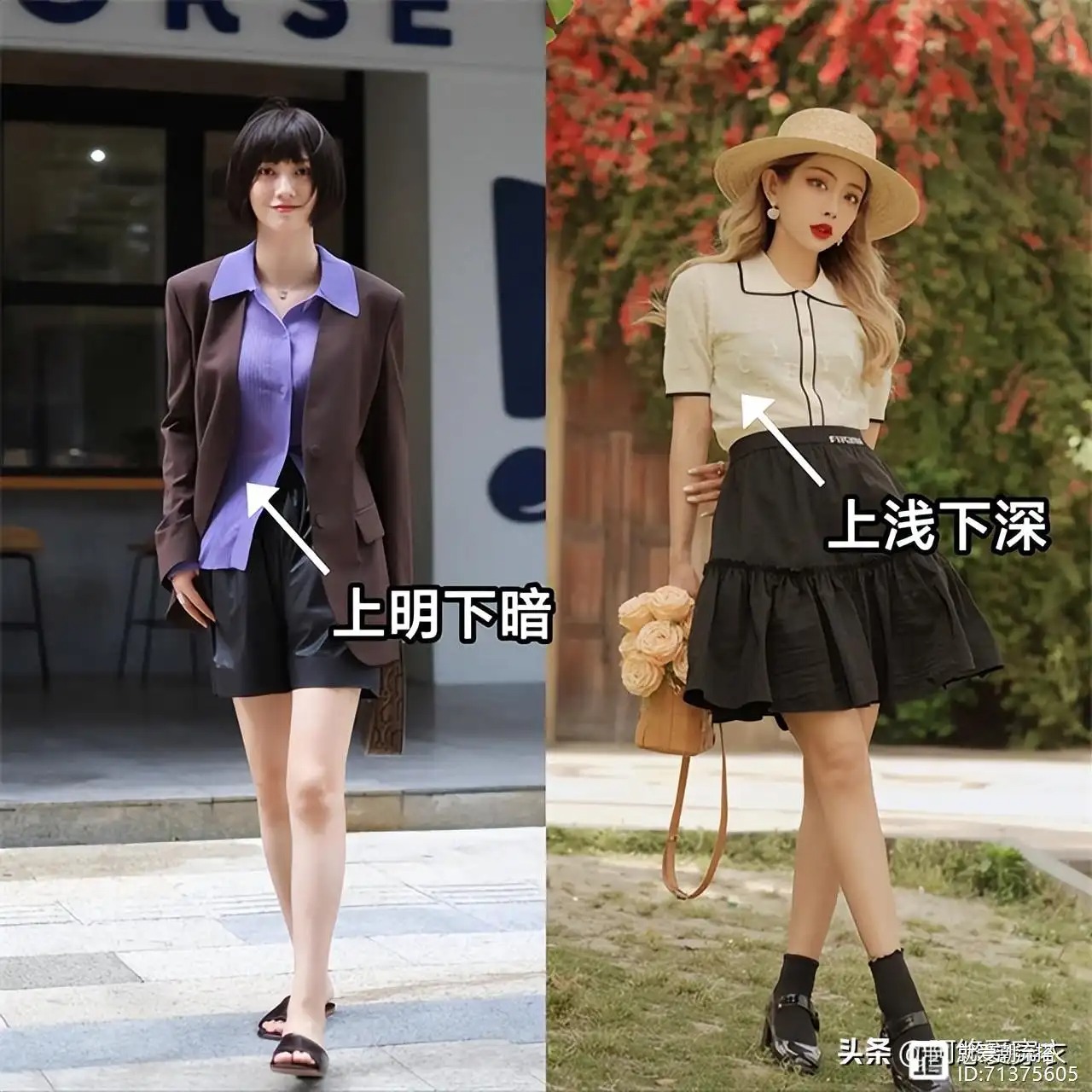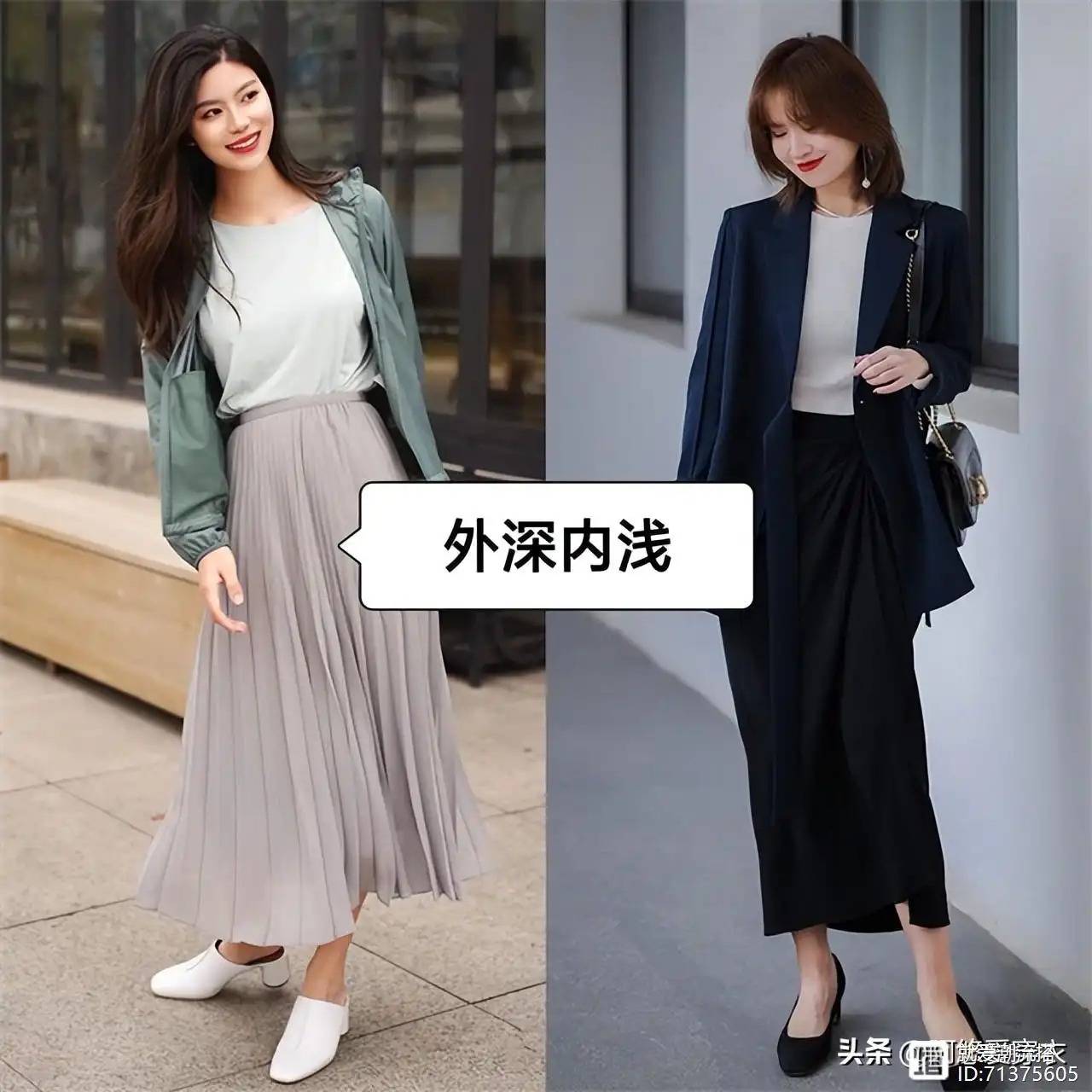 梨形女孩的纵向配色思路是上浅下深,同理可知,横向配色思路当然就为外深内浅。