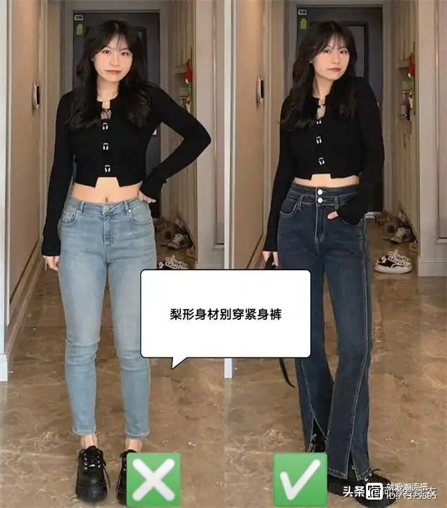 既然姐妹们都知道梨形身材的最大缺陷是在臀腿位置,那在挑选服装时,千万别在雷区“蹦迪”。既暴露身材缺陷又暴露腿型问题的紧身裤、小脚裤、紧身短裤都别选。