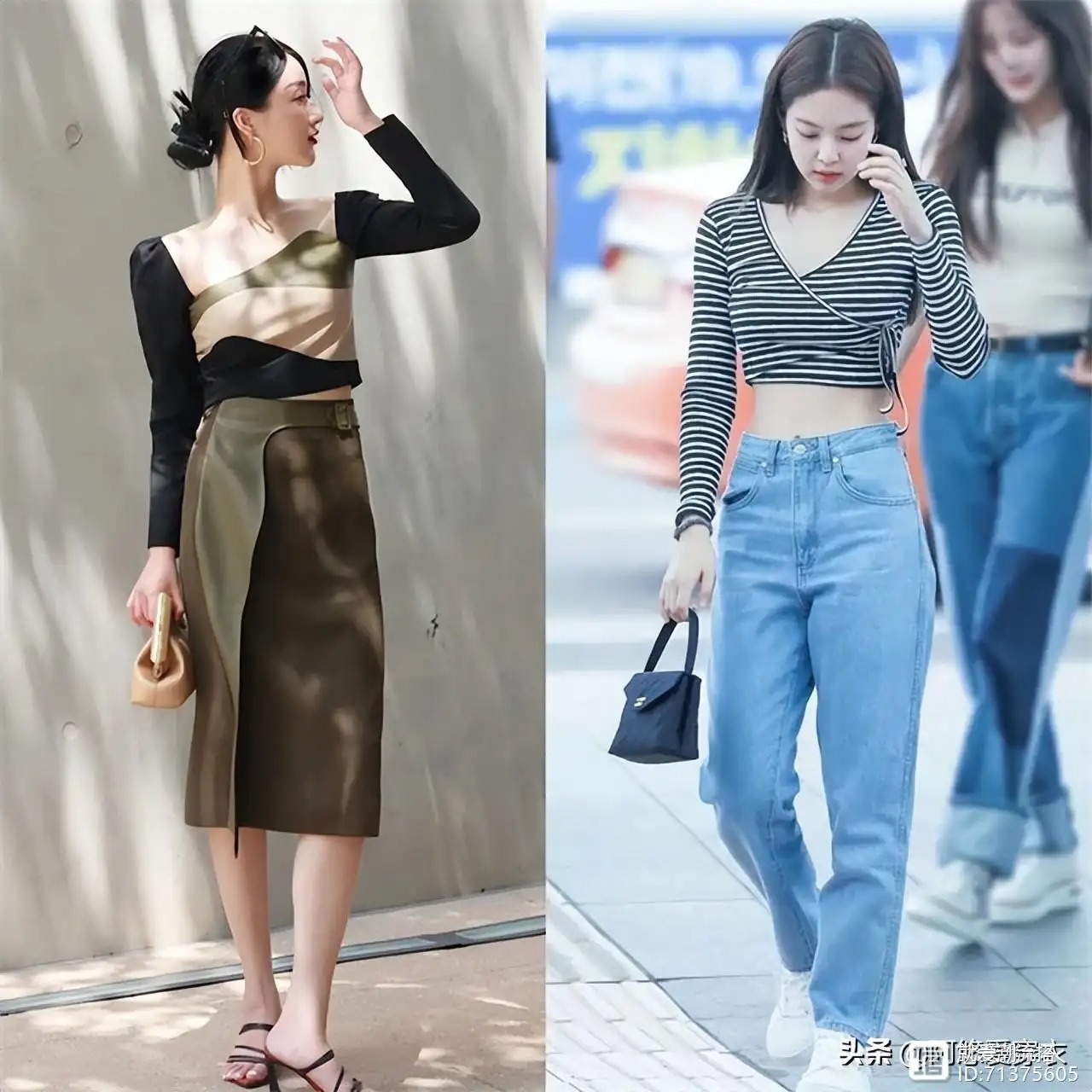 短款上衣一定得选偏修身的设计,长度在肚脐线以上,一定要露出最纤细的腰部曲线,配上设计简约的高腰下装,看谁还敢说咱梨形身材臃肿不好看?