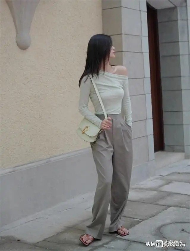 尤其是在春夏季节,像上面这种大领口上衣除了对梨形身材分外友好以外,还能增加搭配的清爽和性感指数。