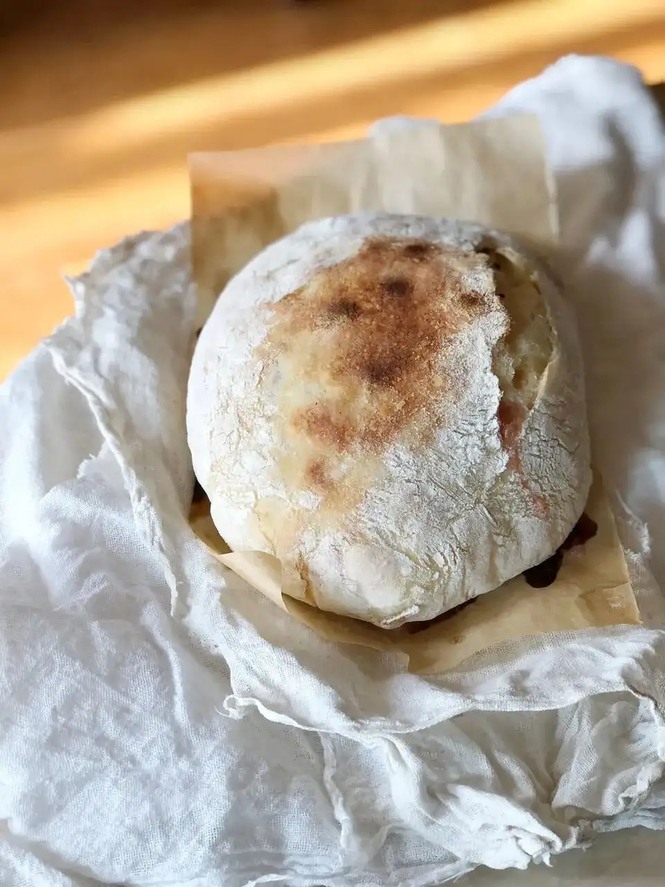 早起煮了麦片粥;搭配上周末自制山楂碎恰巴塔,真还不错……