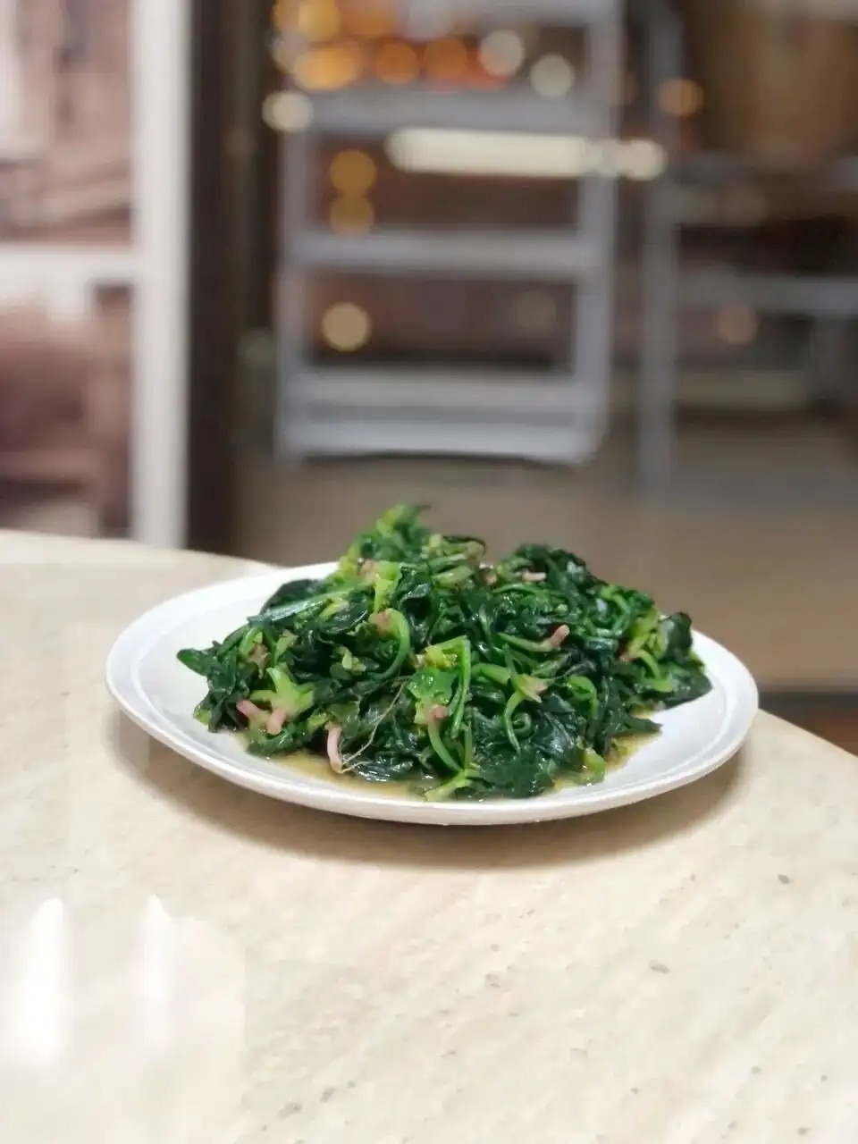 清炒了菠菜;还有先生喜欢的青椒炒百叶,开吃!