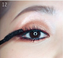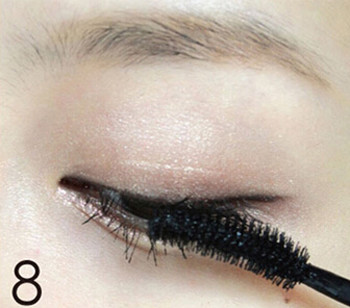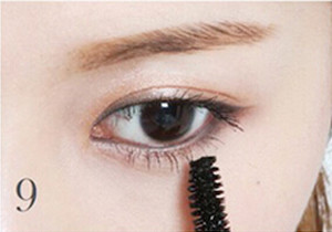 SETP9:用睫毛膏仔细刷上下睫毛,下睫毛要用睫毛膏竖着刷。