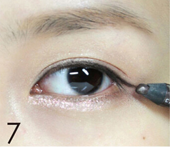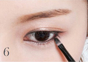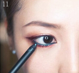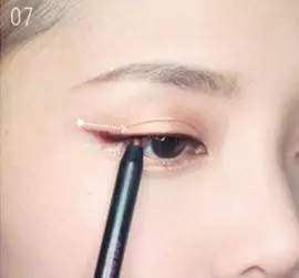 STEP6:用眼线笔从眼头开始沿着下睫毛的根部画下眼线,进一步加深眼睛的轮廓,给你炯炯有神的大眼睛。
