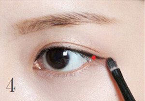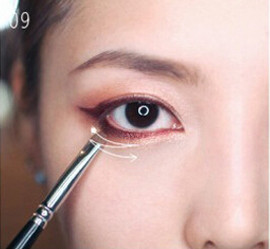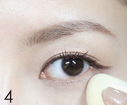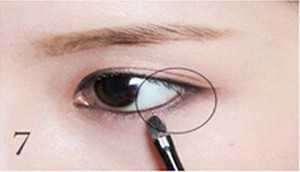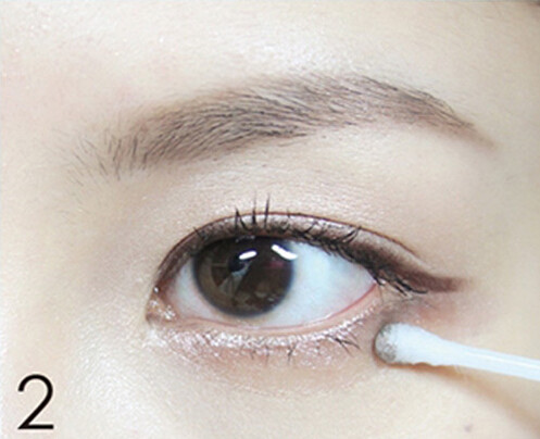 STEP4:用咖啡色眼影晕染在图中下眼睑的白色范围内,拉长眼形。
