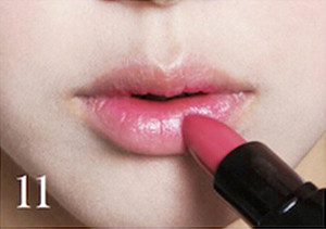 STEP11:自然的蔷薇红色的唇膏涂抹双唇。