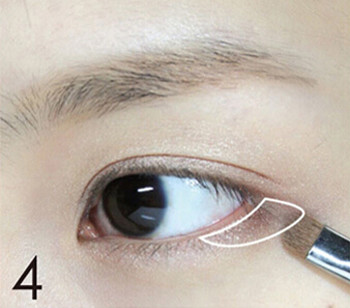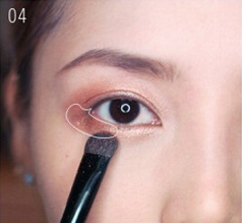 STEP3:蘸取少量的古铜色的眼影晕染在双眼皮范围内。