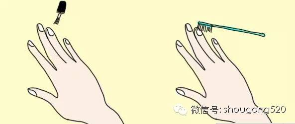 用牙刷可以轻松去掉指甲边上的死皮,涂上甲缘角质油之后,静置一会,用牙刷轻轻按摩,可以轻松去掉指甲边缘的死皮,一周做一两次,会有很好的效果。