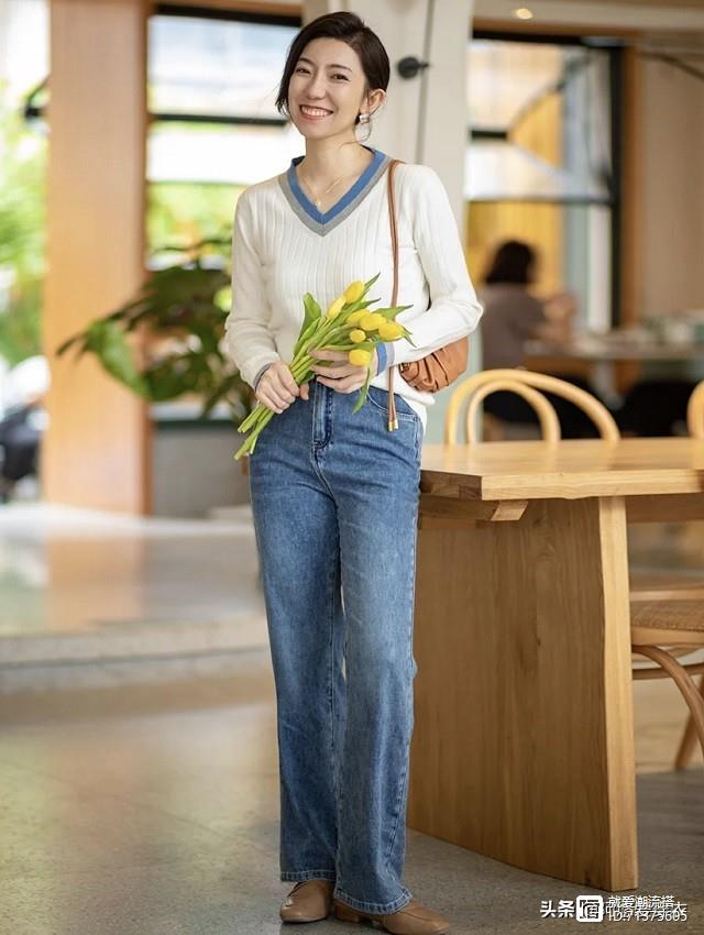 身材五五分其实只要了解一下“上下法则”就是马上搞定的事情啦!上短下长也是调整身材比例的好方法噢!白色针织衫搭配蓝色牛仔裤,给人感觉清新淡雅非常有气质,在冬天直接加个外套就可以。