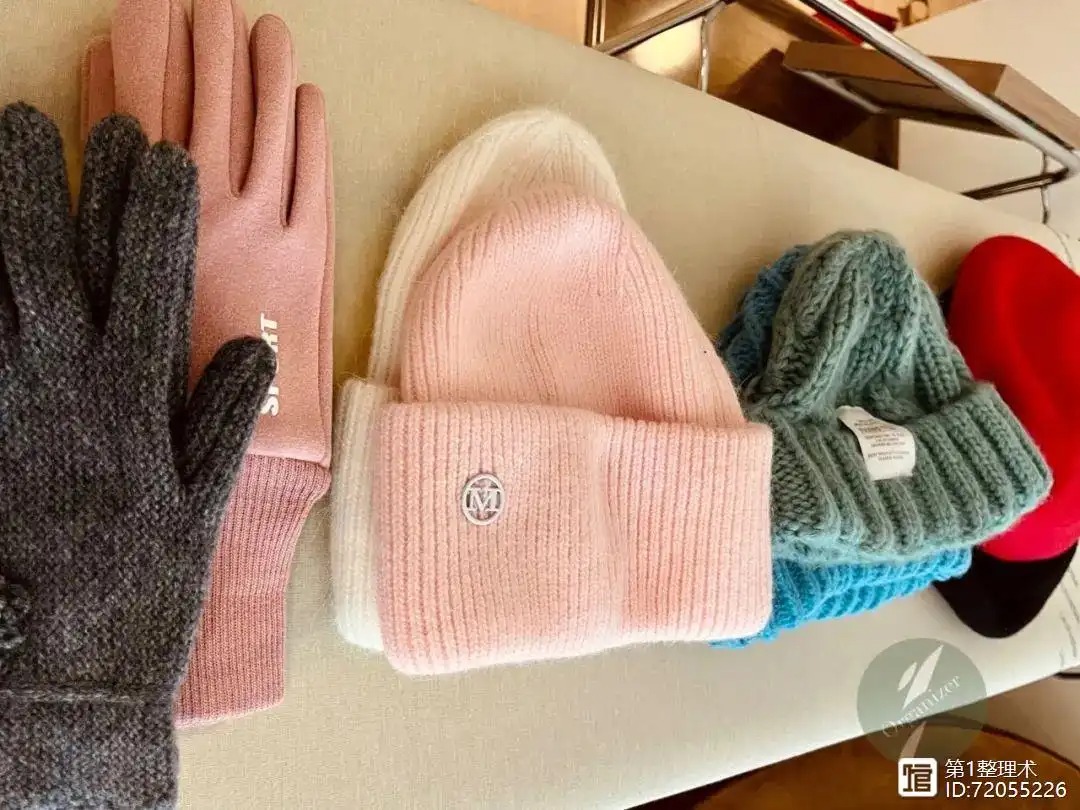 今天整理的对象是衣物配件,包括围巾、帽子、手套、袜子等。