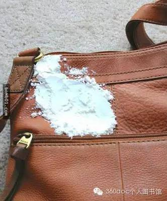 8. 清洁皮革上的污渍。将玉米淀粉涂抹上皮革的污渍上,然后加入一点水混合成为糨糊,静置一夜后用干布擦干净。