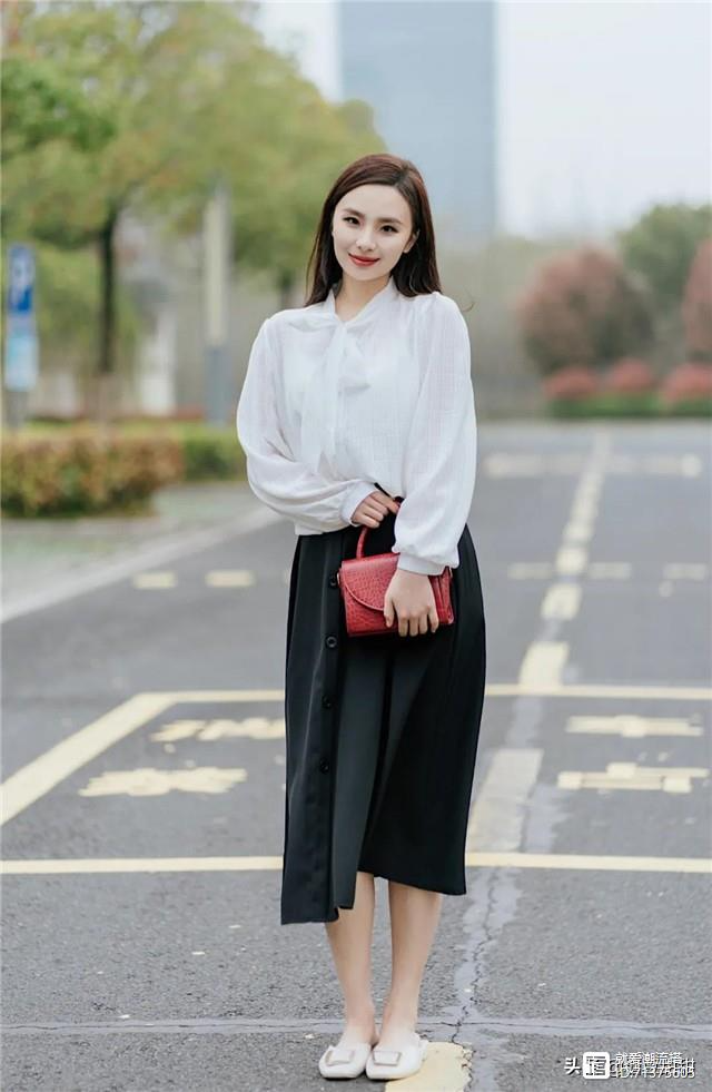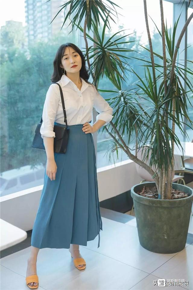 打造职场感:职业女性的穿搭离不开衬衫,白衬衫的搭配往往有一些枯燥无味,所以搭配时需要注意调整你的比例。相比普通的衬衫和牛仔裤,半身裙的搭配更值得参考,比如下面的绿色半身裙搭配白衬衫,层次感十足,也能凸显出腰线。