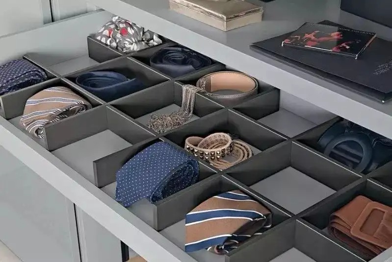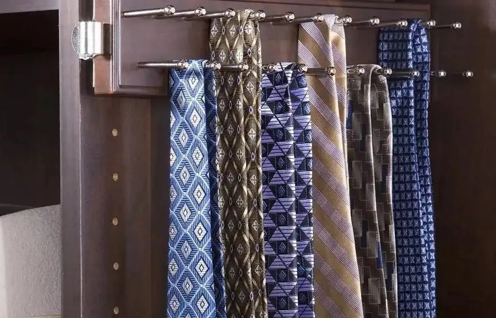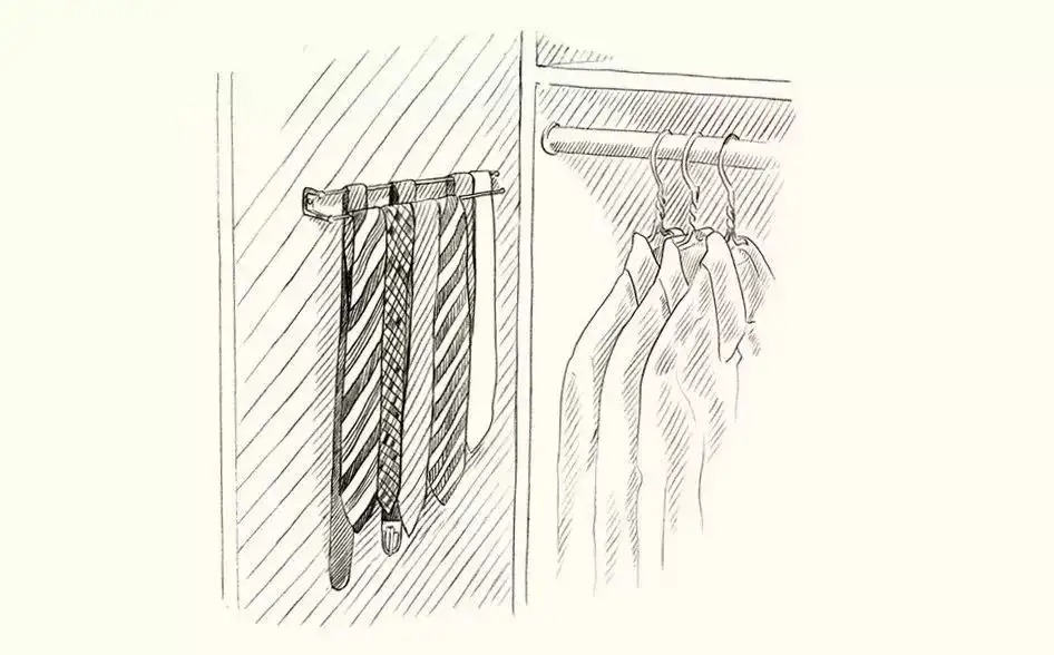所以我建议使用第二种方法,就是在衣橱门后设置架子把领带和腰带挂上去。