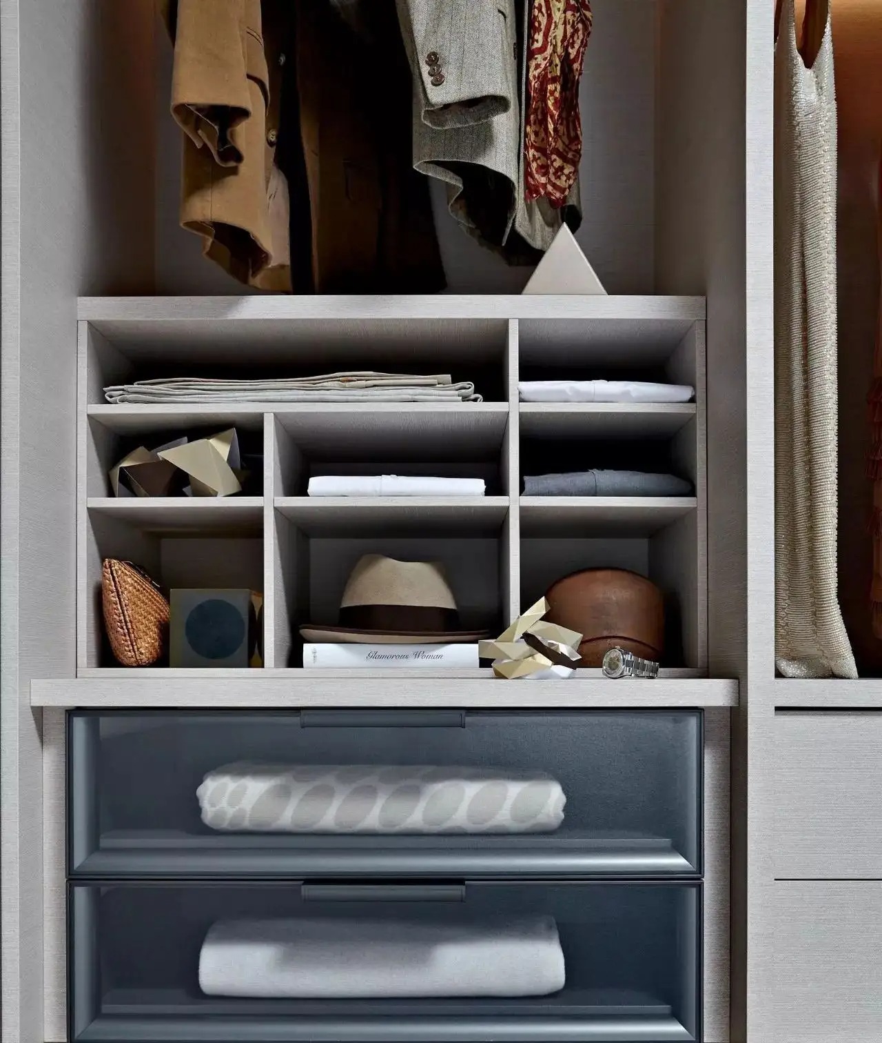 可能你的衣橱空间不大,感觉无法规划出这么多分区,但其实这并不是不可实现。