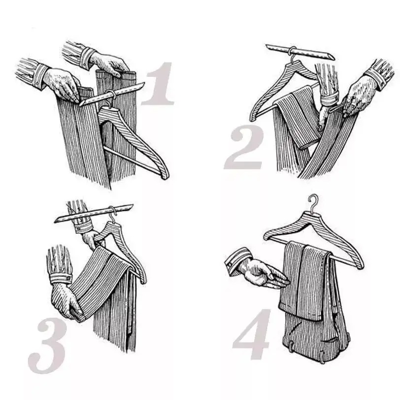 正装长裤如果只是对折挂在衣架上的话,很容易滑落。