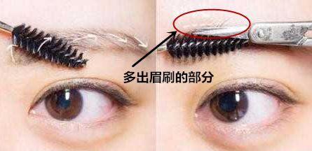 在画好眉形之后(注意是你自己满意的眉形之后),用眉梳上下梳理眉毛,把超出了眉形的部分用眉剪稍微剪掉就好了,这样重复几次,眉毛的长度就可以到理想的程度啦▼
