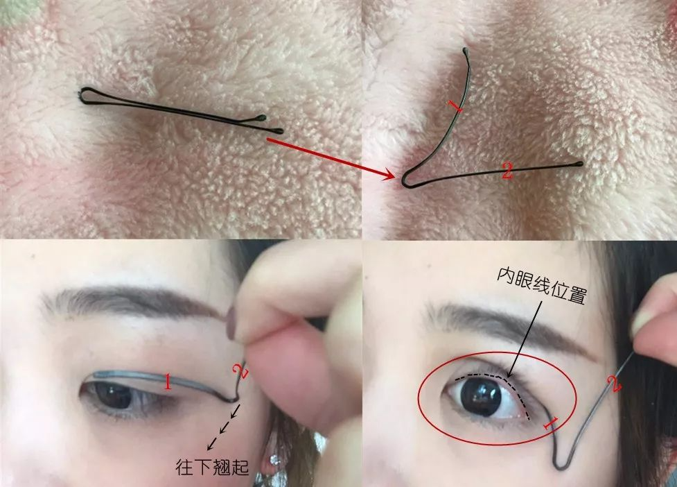 就是这么简单啦~借用一个改造后的小发卡做工具,把眼皮翻开露出内眼睑,轻松get内眼线▼