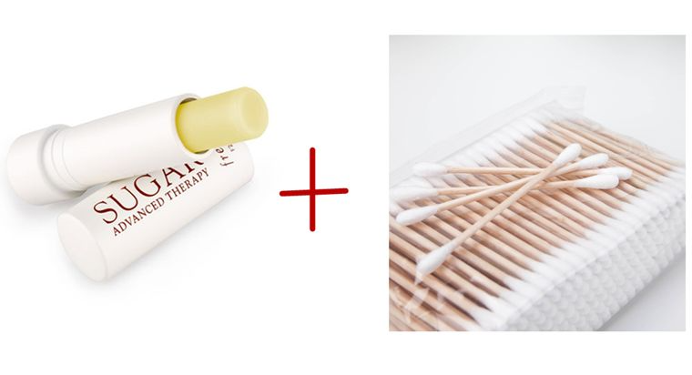 然后是化了眼妆刷了睫毛膏的姑娘们,这里安利给你们一个快速解决眼部脱妆的窍门:拿出一支润唇膏,用棉棒粘一下,眼部脱妆的部分轻轻擦一下就没了,方便又救急啊。▼