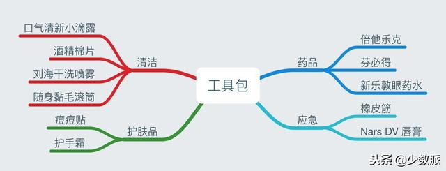 - 随身工具包里的物品适合只在外出时使用,与在家或者在工作地点的需求应该分开看待,以免造成「在家里用了一下出门忘记带」的困扰;