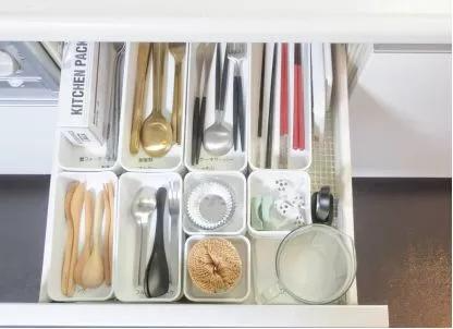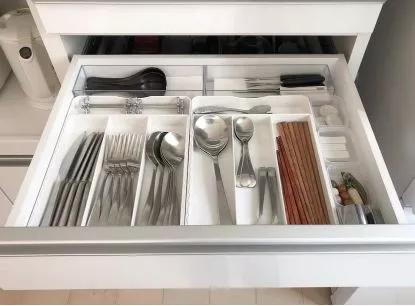 刀叉勺筷是每天使用频率很高的餐具。放在抽屉收纳盒里方便拿取,而且整洁统一,给人视觉感也很好。
