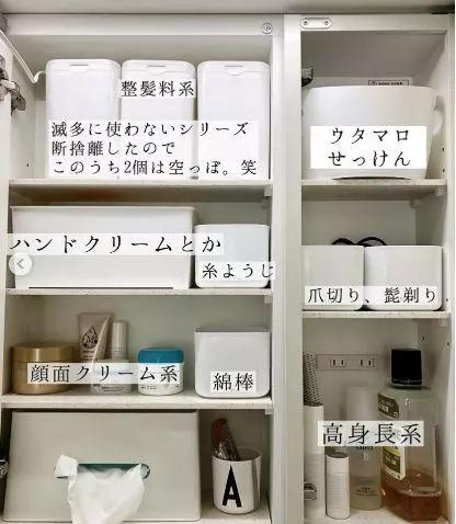 卫生间的收纳主要集中在洗面台的区域。中国一般是干湿分离,日本家庭大都会“三式分离”或者“四式分离”,即把马桶、洗面台或洗手池、浴室以及洗衣机隔开分别利用。国情不一样,但是收纳整理无国界。他们的收纳方式我们也可以参考,取长补短。
