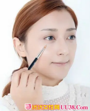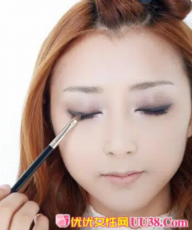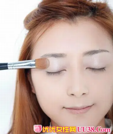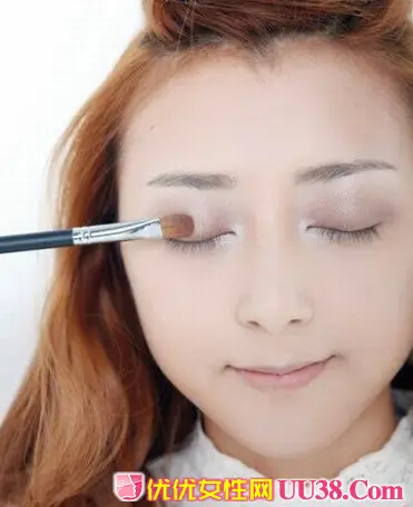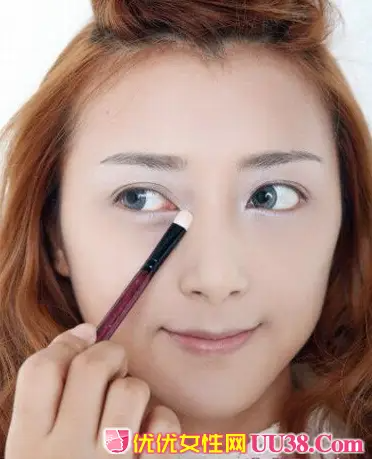 上眼睑涂抹之后在眼头位置涂抹1CM左右宽度的银白色眼影,起到提亮眼部神采的效果。 #p#副标题#e#