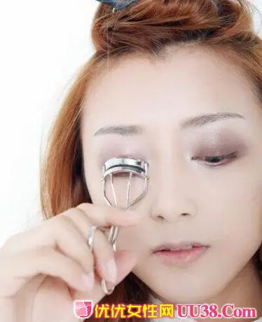 用睫毛夹轻轻地夹起睫毛,使睫毛微微向上卷翘,之后粘假睫毛更方便。#p#副标题#e#