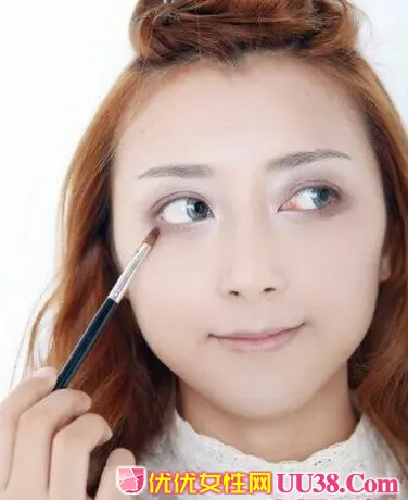 4.在下眼睑处抹上金棕色眼影