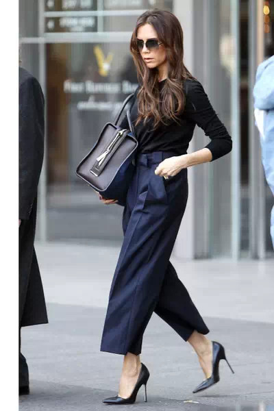 高腰款的阔腿裤几乎不挑人穿,穿着时可以在腰部最顶端系上细腰带,助其一臂之力将下半身拉长到极限。隐藏在裤管里的高跟鞋会融为你双腿的一部分,将其修饰得优美修长。