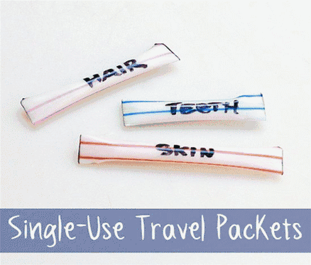 将每天的洗漱用品装进吸管,用直板机封口,便捷还不浪费。