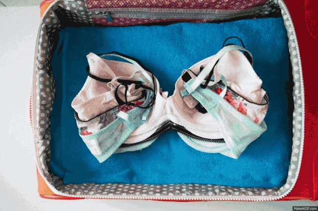 把bra叠在一起然后罩杯的地方还可以放上小内裤,再卷起来,完美!