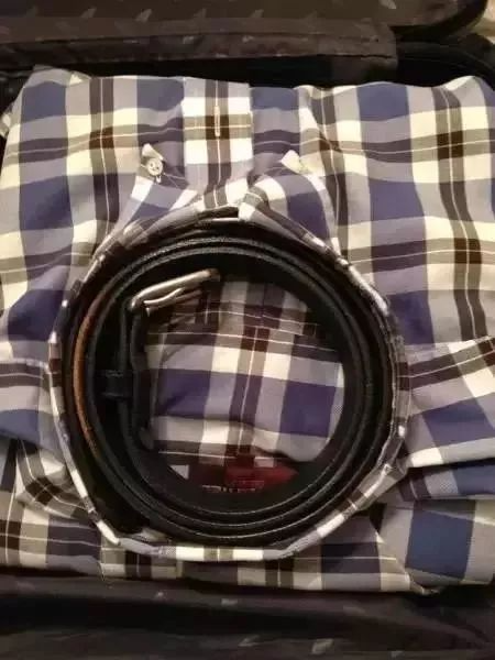 皮带这样放可以让衬衫保持形状不被压皱,毕竟领子最关键。