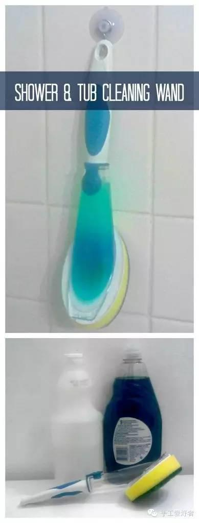 淋浴房洗浴缸:平时我们用这海绵刷刷锅刷碗,其实这刷子拿来刷淋浴房和浴缸也很好用。醋兑上洗洁精,和这刷子一合体,无敌了!
