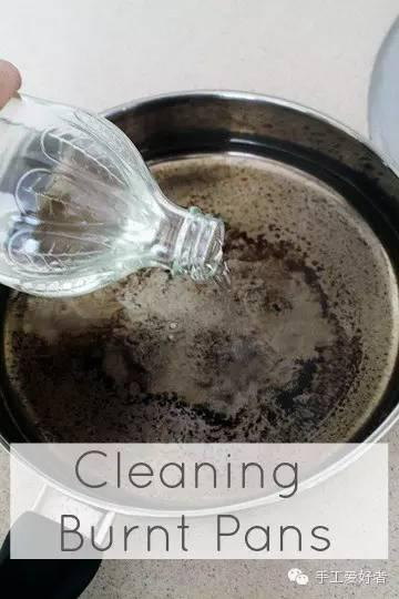 烧焦的锅:醋、水、小苏打浸泡一夜,第二天就干净了!