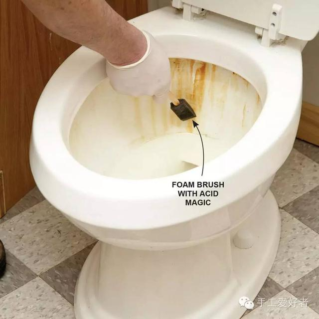 马桶污渍:马桶后侧容易残留水渍和污垢,用海绵刷蘸白醋刷洗几次很快就干净了。