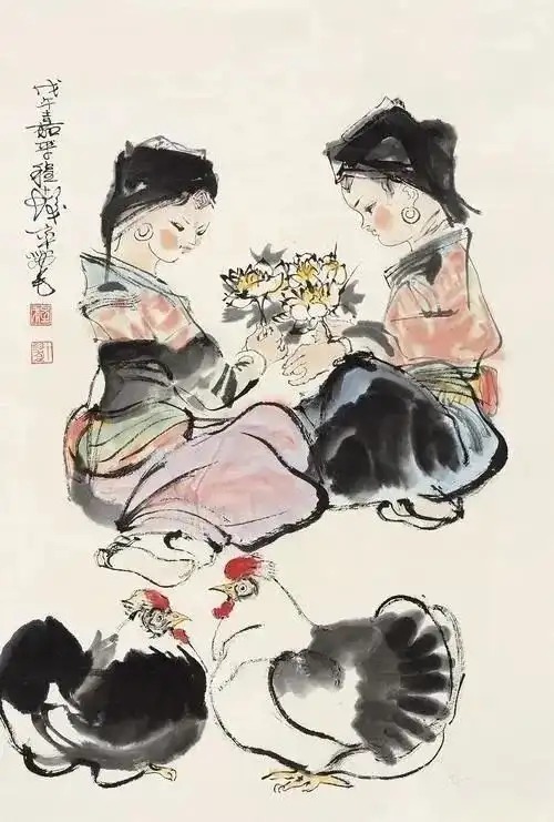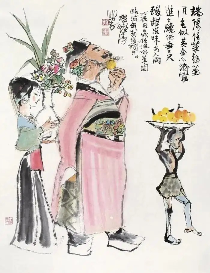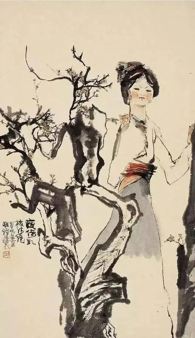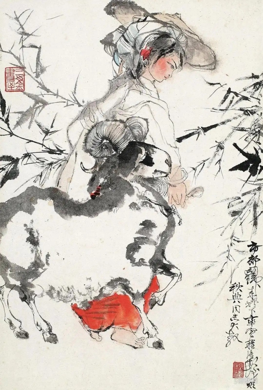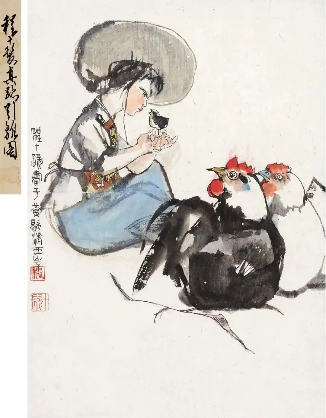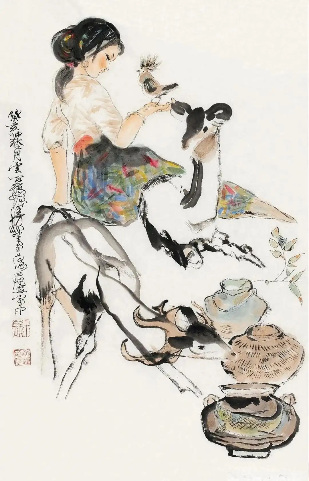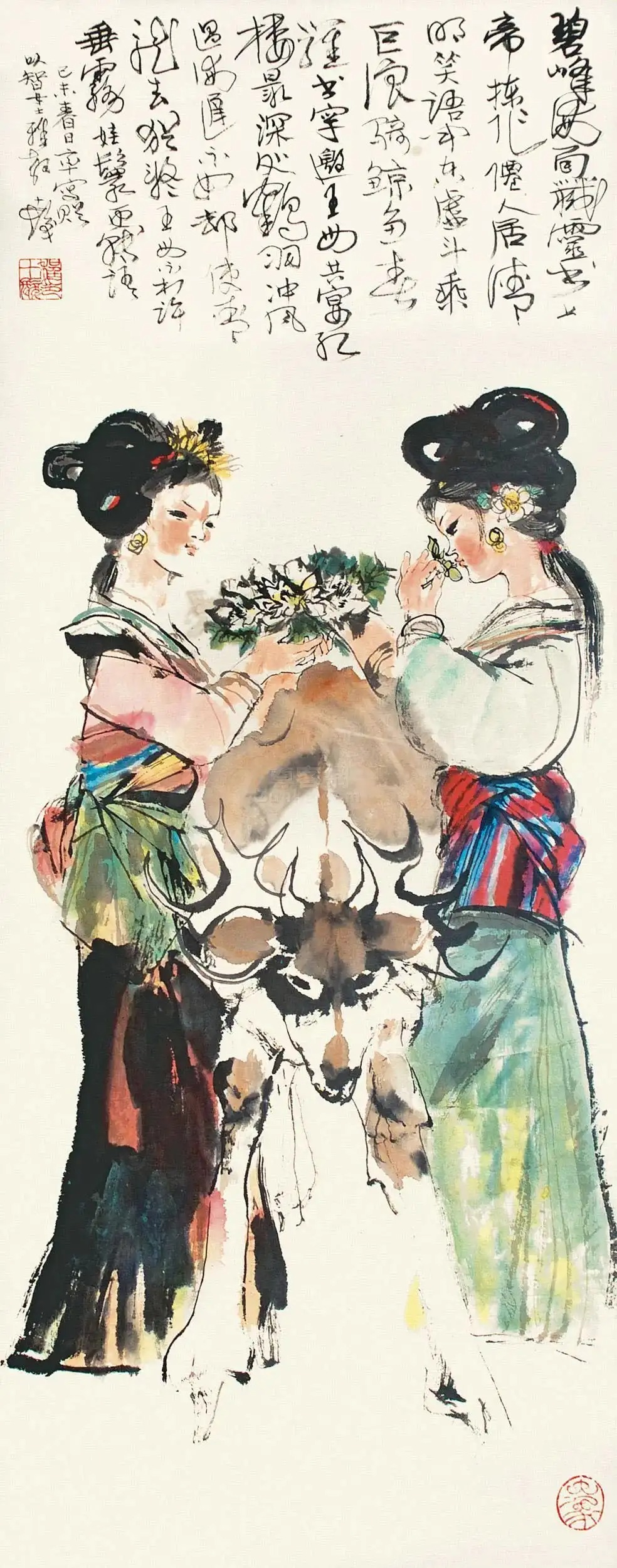 程十发(1921-2007),中国近现代美术史上独树一帜的艺术大师,其人物画以灵动飘逸的线条、明快鲜活的色彩和充满生命力的艺术表达,成为二十世纪中国画转型的重要标志。本文精选其100幅经典人物画作,带您走进这位海派艺术巨匠的笔墨世界。程十发笔下的少数民族形象,打破了传统工笔的拘谨,以写意线条勾勒出西南边陲的浪漫风情。《傣族少女》中,少女身姿如风中细柳,简练的墨色长裙与朱砂点缀的头饰形成鲜明对比,传递出热带雨林的生机;《高原之春》里藏族少女的羊皮袄以枯笔皴擦出粗犷质感,面颊的胭脂色却透出江南水乡的温婉,这正是画家'以线造型,以色传情'理念的完美诠释。在《芦笙舞》三联画中,画家大胆采用俯瞰视角,将苗家儿女的舞动身姿转化为流动的线条符号,笙管与裙摆的弧线相互呼应,构成视觉的交响乐。而《火把节》则运用泼墨技法渲染夜色,跳跃的橙色火光照亮彝族汉子的轮廓,展现出原始生命的张力。程十发对传统题材的再造令人耳目一新。《李太白醉酒图》突破历代白描范式,以倾斜构图表现诗仙的醉态,袍服上的飞白笔触仿佛带着酒香墨气;《钟馗夜巡图》中的捉鬼天师不再怒目圆睁,微醺的神态与蜷缩的小鬼构成戏剧性画面,透出画家对民间传说的幽默解读。《红楼十二钗》系列堪称文人画现代转型的典范。史湘云醉卧芍药裀的场景,花瓣以没骨法点染,人物衣纹却融入书法飞白笔意,传统工笔与写意的界限在此消弭。黛玉葬花的背影处理更具深意,大面积留白中仅以飘落的桃花暗示泪痕,开创了'以虚写哀'的新境。在现实题材创作中,程十发展现出艺术家的人文关怀。《采药姑娘》以赭石与花青的撞色表现山间晨雾,少女背篓中的草药以篆书笔法写出,将劳动之美提升至美学境界;《渔村新事》采用连环画式构图,渔民们修理渔网的动态通过衣纹走向自然串联,眼角笑纹的微妙刻画胜过千言万语。《茶馆记事》四条屏堪称市井生活百科全书,老茶客的紫砂壶、说书人的折扇、孩童手中的糖画,每个细节都是时代印记。画家独创的'游丝描'在此臻于化境,细若发丝的线条勾勒出百态人生,让水墨画拥有了油画的叙事容量。晚年的程十发开启更具突破性的艺术实验。《敦煌飞天变奏曲》将壁画元素解构重组,菩萨衣带化作几何色块,却通过墨色浓淡保持东方韵味;《马戏团》系列借鉴立体主义手法,小丑的服装碎片化处理中仍可见书法运笔的节奏。在《自画像》中,画家以朱砂勾勒面部轮廓,背景的西洋红与群青碰撞出超现实意境,题跋'我与我周旋久,宁作我'的碑体书法,完成传统文人画精神内核的现代转译。这种'借西润中'的探索,为水墨人物画开辟了新航道。从雪域高原到江南水乡,从历史长河到烟火人间,程十发用100幅画作构建起一个贯通古今的艺术宇宙。他的笔墨既是传统的守护者,又是创新的破壁人,那些舞动的线条与跳跃的色彩,至今仍在诉说着'笔墨当随时代'的真谛。当我们驻足这些画作前,不仅能看见人物形象的生动气韵,更能触摸到一个时代文化转型的脉搏跳动。