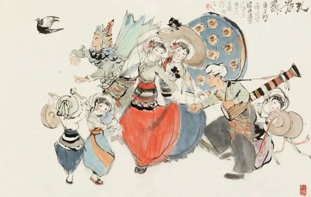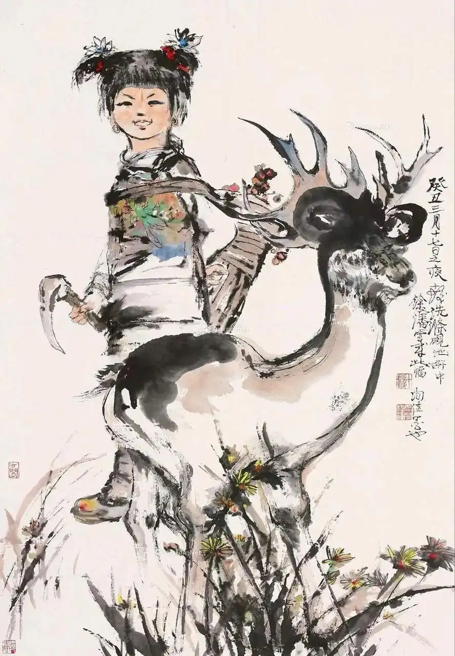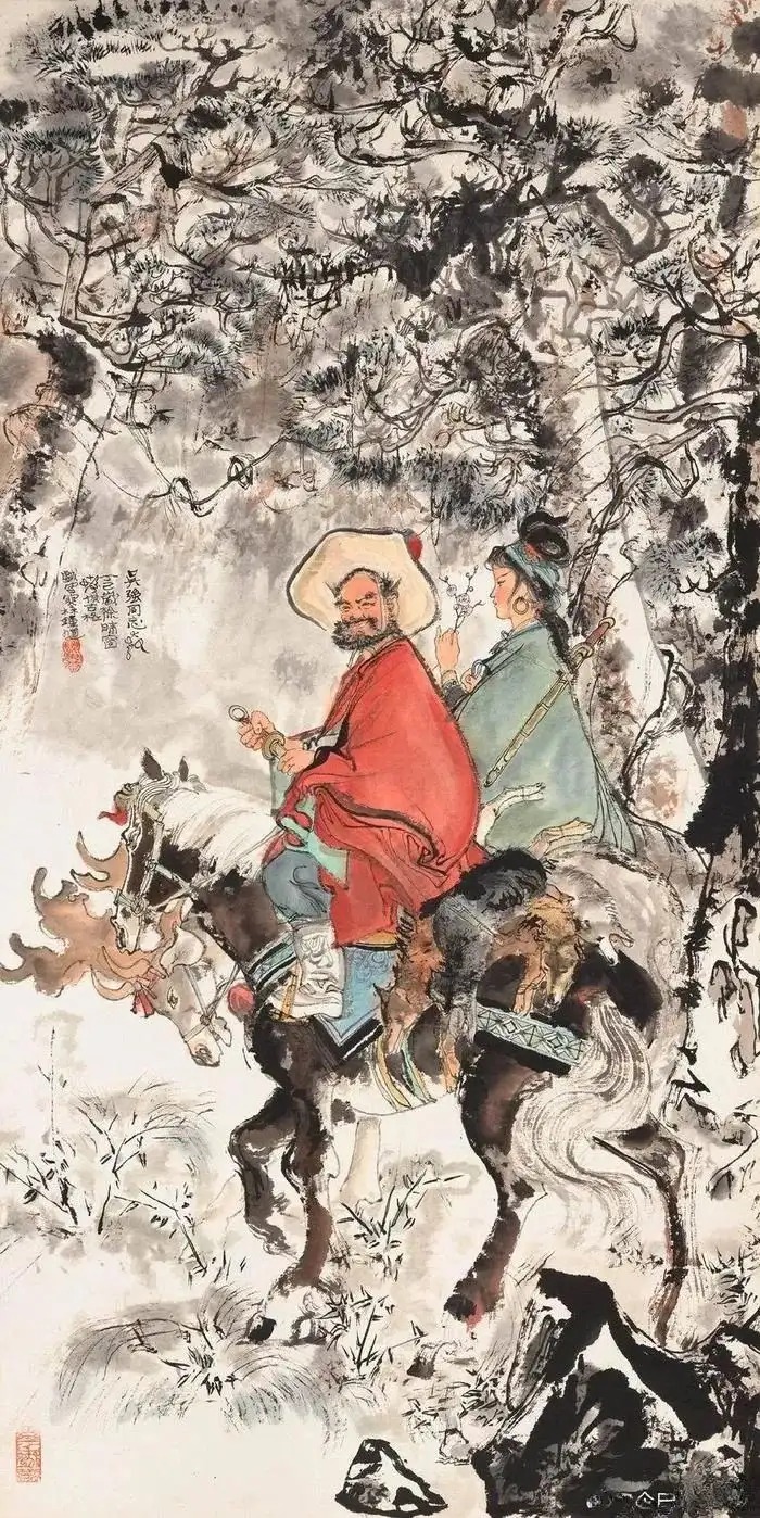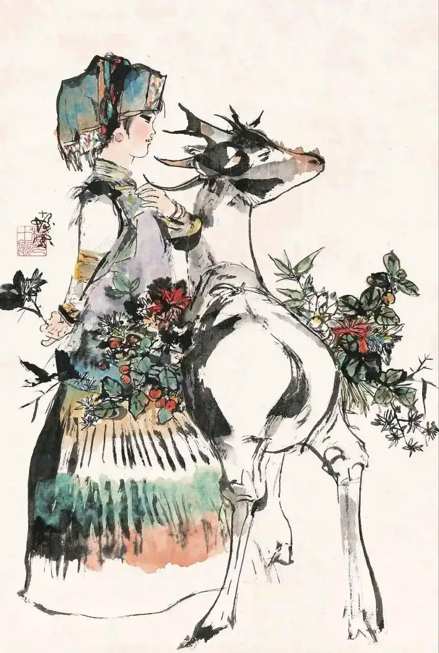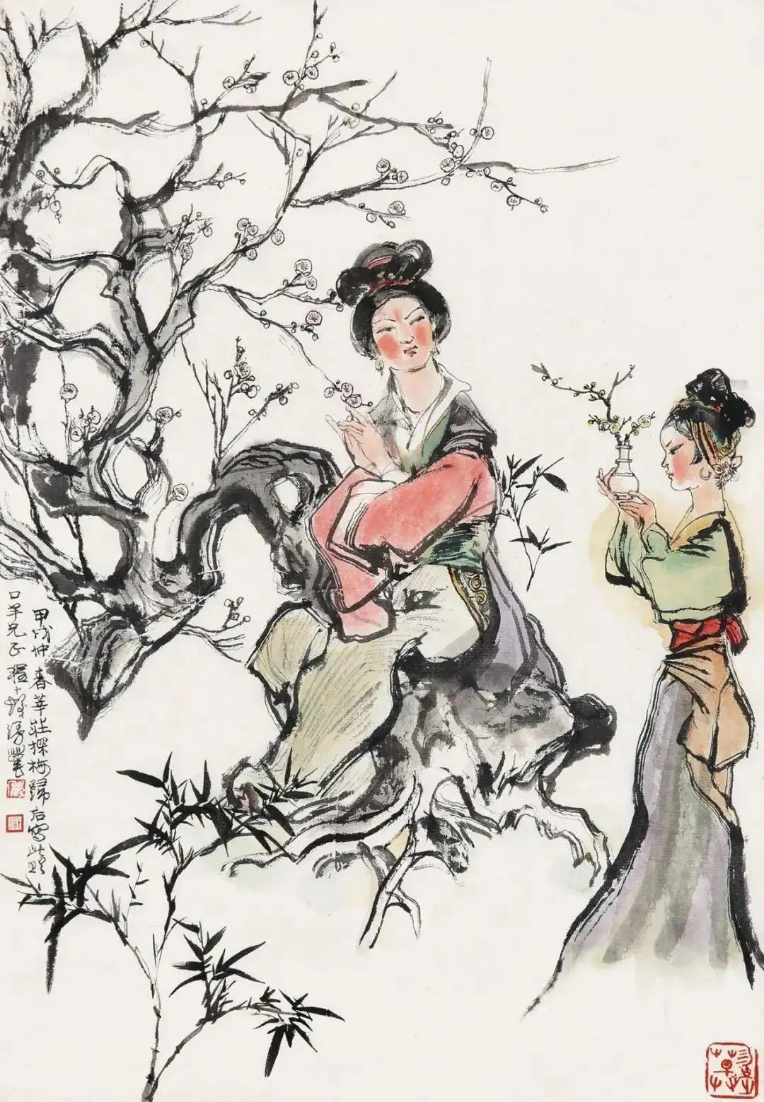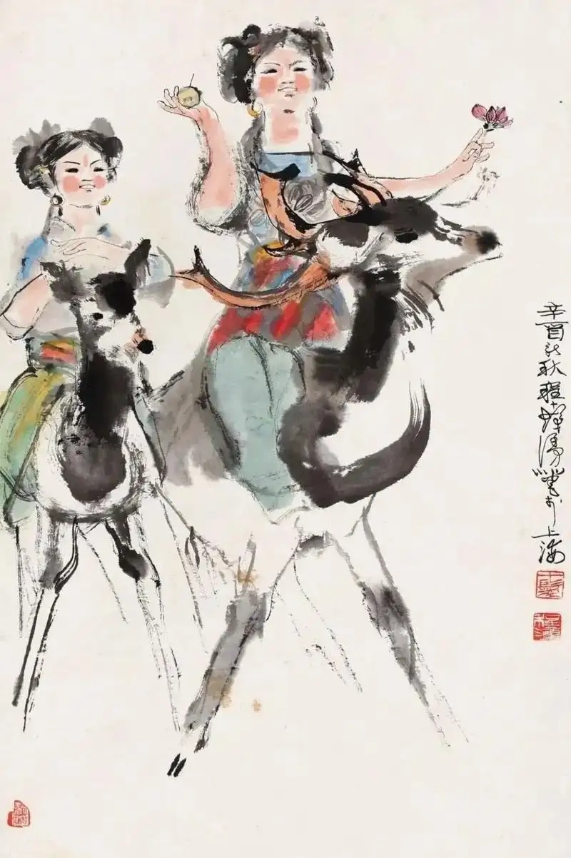 程十发(1921-2007),中国近现代美术史上独树一帜的艺术大师,其人物画以灵动飘逸的线条、明快鲜活的色彩和充满生命力的艺术表达,成为二十世纪中国画转型的重要标志。本文精选其100幅经典人物画作,带您走进这位海派艺术巨匠的笔墨世界。程十发笔下的少数民族形象,打破了传统工笔的拘谨,以写意线条勾勒出西南边陲的浪漫风情。《傣族少女》中,少女身姿如风中细柳,简练的墨色长裙与朱砂点缀的头饰形成鲜明对比,传递出热带雨林的生机;《高原之春》里藏族少女的羊皮袄以枯笔皴擦出粗犷质感,面颊的胭脂色却透出江南水乡的温婉,这正是画家'以线造型,以色传情'理念的完美诠释。在《芦笙舞》三联画中,画家大胆采用俯瞰视角,将苗家儿女的舞动身姿转化为流动的线条符号,笙管与裙摆的弧线相互呼应,构成视觉的交响乐。而《火把节》则运用泼墨技法渲染夜色,跳跃的橙色火光照亮彝族汉子的轮廓,展现出原始生命的张力。程十发对传统题材的再造令人耳目一新。《李太白醉酒图》突破历代白描范式,以倾斜构图表现诗仙的醉态,袍服上的飞白笔触仿佛带着酒香墨气;《钟馗夜巡图》中的捉鬼天师不再怒目圆睁,微醺的神态与蜷缩的小鬼构成戏剧性画面,透出画家对民间传说的幽默解读。《红楼十二钗》系列堪称文人画现代转型的典范。史湘云醉卧芍药裀的场景,花瓣以没骨法点染,人物衣纹却融入书法飞白笔意,传统工笔与写意的界限在此消弭。黛玉葬花的背影处理更具深意,大面积留白中仅以飘落的桃花暗示泪痕,开创了'以虚写哀'的新境。在现实题材创作中,程十发展现出艺术家的人文关怀。《采药姑娘》以赭石与花青的撞色表现山间晨雾,少女背篓中的草药以篆书笔法写出,将劳动之美提升至美学境界;《渔村新事》采用连环画式构图,渔民们修理渔网的动态通过衣纹走向自然串联,眼角笑纹的微妙刻画胜过千言万语。《茶馆记事》四条屏堪称市井生活百科全书,老茶客的紫砂壶、说书人的折扇、孩童手中的糖画,每个细节都是时代印记。画家独创的'游丝描'在此臻于化境,细若发丝的线条勾勒出百态人生,让水墨画拥有了油画的叙事容量。晚年的程十发开启更具突破性的艺术实验。《敦煌飞天变奏曲》将壁画元素解构重组,菩萨衣带化作几何色块,却通过墨色浓淡保持东方韵味;《马戏团》系列借鉴立体主义手法,小丑的服装碎片化处理中仍可见书法运笔的节奏。在《自画像》中,画家以朱砂勾勒面部轮廓,背景的西洋红与群青碰撞出超现实意境,题跋'我与我周旋久,宁作我'的碑体书法,完成传统文人画精神内核的现代转译。这种'借西润中'的探索,为水墨人物画开辟了新航道。从雪域高原到江南水乡,从历史长河到烟火人间,程十发用100幅画作构建起一个贯通古今的艺术宇宙。他的笔墨既是传统的守护者,又是创新的破壁人,那些舞动的线条与跳跃的色彩,至今仍在诉说着'笔墨当随时代'的真谛。当我们驻足这些画作前,不仅能看见人物形象的生动气韵,更能触摸到一个时代文化转型的脉搏跳动。