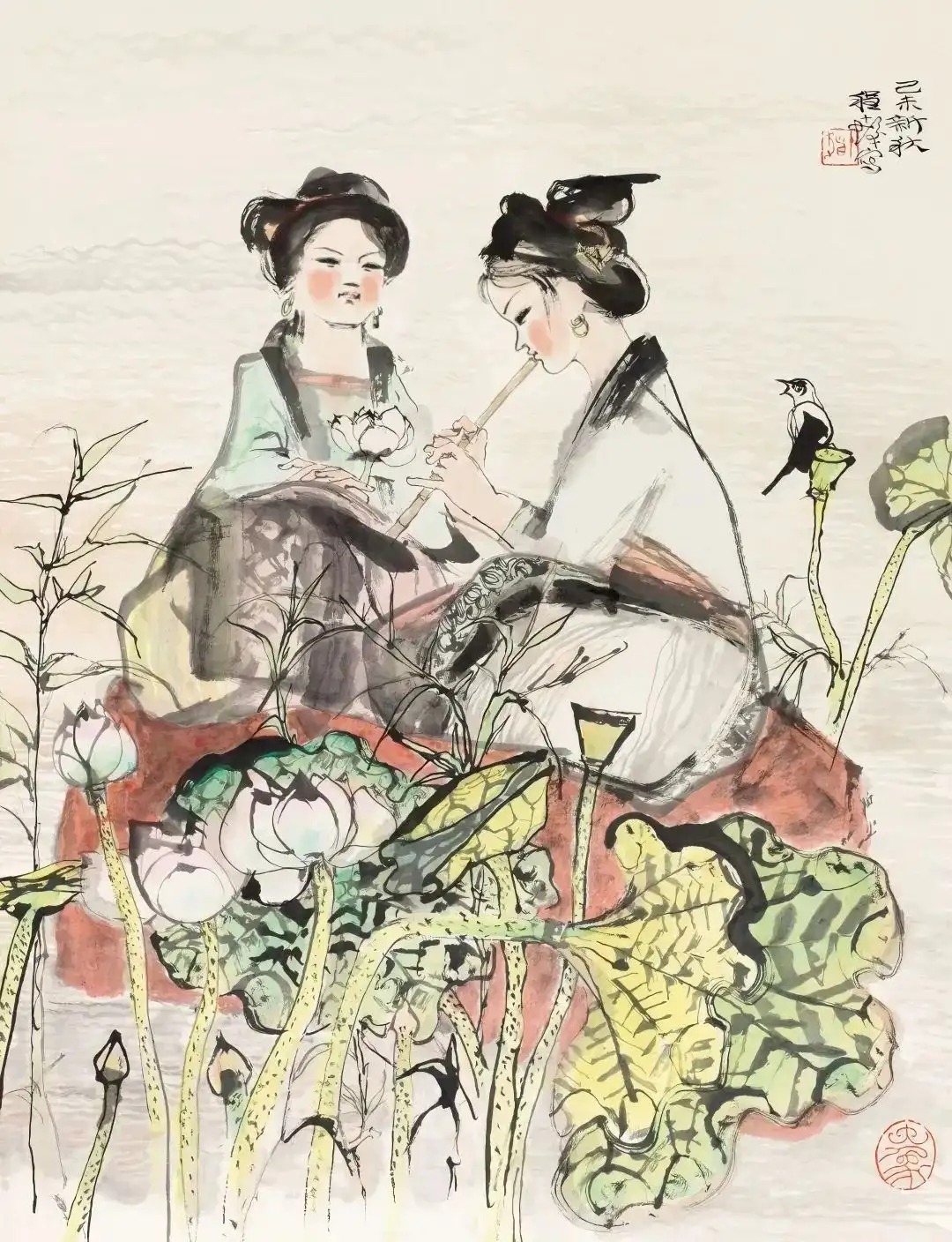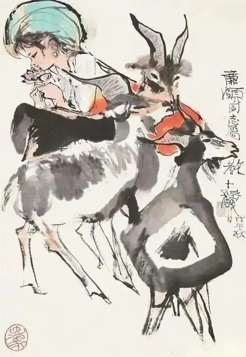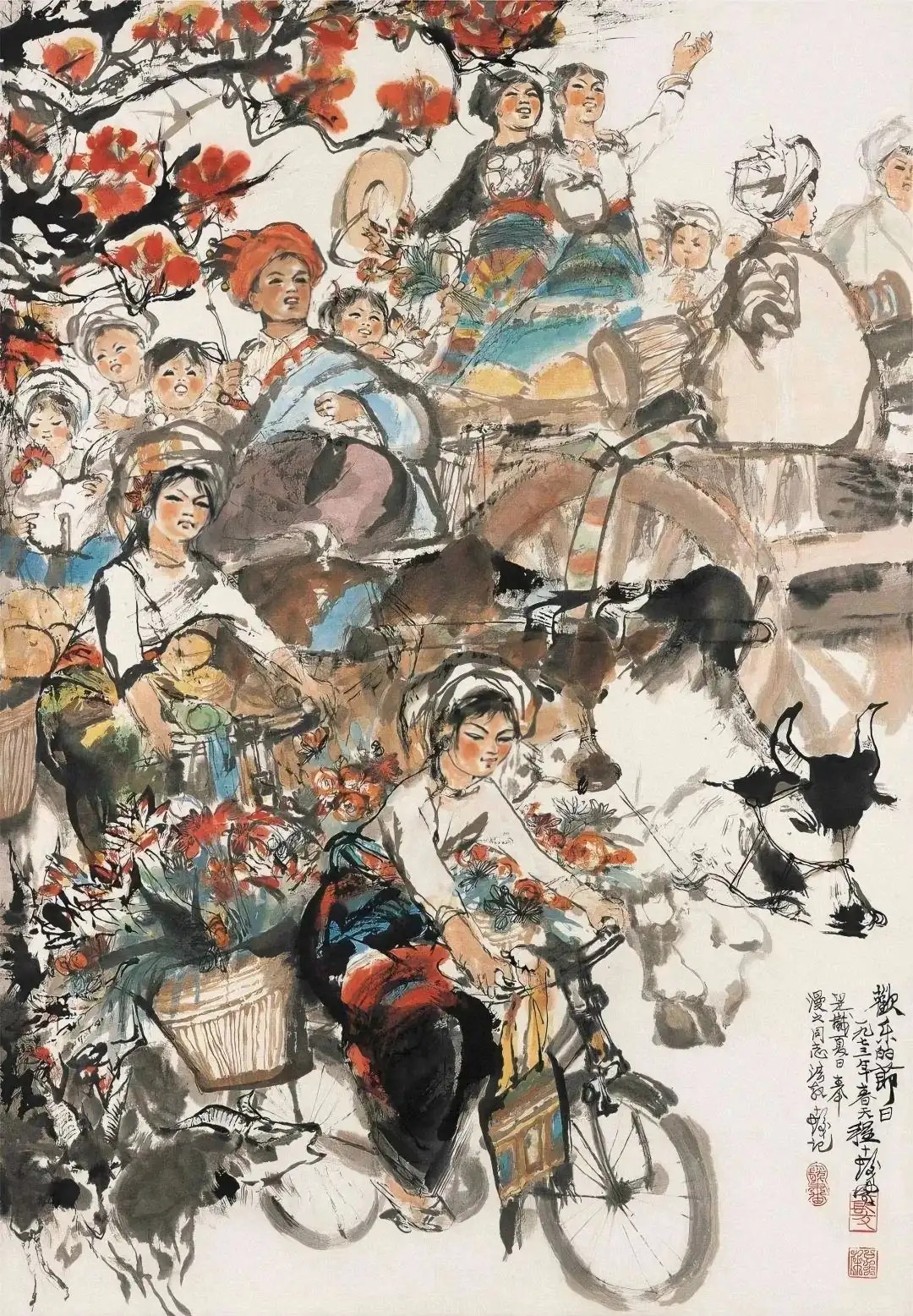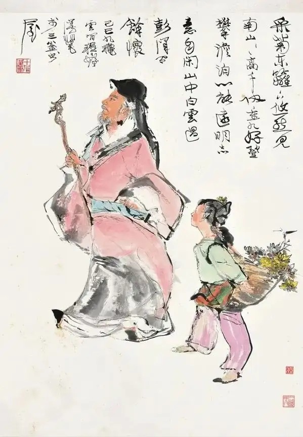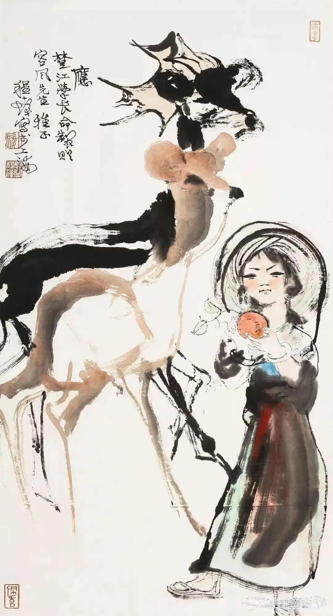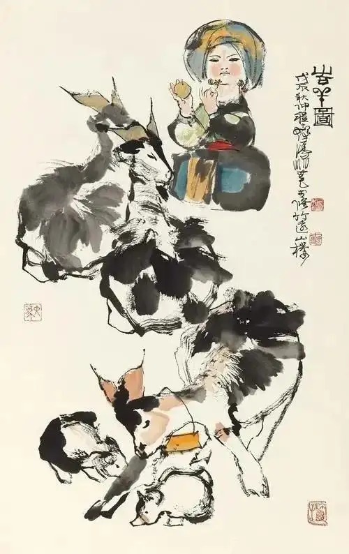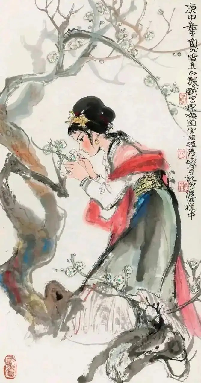 程十发(1921-2007),中国近现代美术史上独树一帜的艺术大师,其人物画以灵动飘逸的线条、明快鲜活的色彩和充满生命力的艺术表达,成为二十世纪中国画转型的重要标志。本文精选其100幅经典人物画作,带您走进这位海派艺术巨匠的笔墨世界。程十发笔下的少数民族形象,打破了传统工笔的拘谨,以写意线条勾勒出西南边陲的浪漫风情。《傣族少女》中,少女身姿如风中细柳,简练的墨色长裙与朱砂点缀的头饰形成鲜明对比,传递出热带雨林的生机;《高原之春》里藏族少女的羊皮袄以枯笔皴擦出粗犷质感,面颊的胭脂色却透出江南水乡的温婉,这正是画家'以线造型,以色传情'理念的完美诠释。在《芦笙舞》三联画中,画家大胆采用俯瞰视角,将苗家儿女的舞动身姿转化为流动的线条符号,笙管与裙摆的弧线相互呼应,构成视觉的交响乐。而《火把节》则运用泼墨技法渲染夜色,跳跃的橙色火光照亮彝族汉子的轮廓,展现出原始生命的张力。程十发对传统题材的再造令人耳目一新。《李太白醉酒图》突破历代白描范式,以倾斜构图表现诗仙的醉态,袍服上的飞白笔触仿佛带着酒香墨气;《钟馗夜巡图》中的捉鬼天师不再怒目圆睁,微醺的神态与蜷缩的小鬼构成戏剧性画面,透出画家对民间传说的幽默解读。《红楼十二钗》系列堪称文人画现代转型的典范。史湘云醉卧芍药裀的场景,花瓣以没骨法点染,人物衣纹却融入书法飞白笔意,传统工笔与写意的界限在此消弭。黛玉葬花的背影处理更具深意,大面积留白中仅以飘落的桃花暗示泪痕,开创了'以虚写哀'的新境。在现实题材创作中,程十发展现出艺术家的人文关怀。《采药姑娘》以赭石与花青的撞色表现山间晨雾,少女背篓中的草药以篆书笔法写出,将劳动之美提升至美学境界;《渔村新事》采用连环画式构图,渔民们修理渔网的动态通过衣纹走向自然串联,眼角笑纹的微妙刻画胜过千言万语。《茶馆记事》四条屏堪称市井生活百科全书,老茶客的紫砂壶、说书人的折扇、孩童手中的糖画,每个细节都是时代印记。画家独创的'游丝描'在此臻于化境,细若发丝的线条勾勒出百态人生,让水墨画拥有了油画的叙事容量。晚年的程十发开启更具突破性的艺术实验。《敦煌飞天变奏曲》将壁画元素解构重组,菩萨衣带化作几何色块,却通过墨色浓淡保持东方韵味;《马戏团》系列借鉴立体主义手法,小丑的服装碎片化处理中仍可见书法运笔的节奏。在《自画像》中,画家以朱砂勾勒面部轮廓,背景的西洋红与群青碰撞出超现实意境,题跋'我与我周旋久,宁作我'的碑体书法,完成传统文人画精神内核的现代转译。这种'借西润中'的探索,为水墨人物画开辟了新航道。从雪域高原到江南水乡,从历史长河到烟火人间,程十发用100幅画作构建起一个贯通古今的艺术宇宙。他的笔墨既是传统的守护者,又是创新的破壁人,那些舞动的线条与跳跃的色彩,至今仍在诉说着'笔墨当随时代'的真谛。当我们驻足这些画作前,不仅能看见人物形象的生动气韵,更能触摸到一个时代文化转型的脉搏跳动。