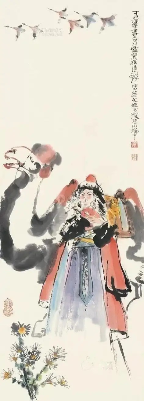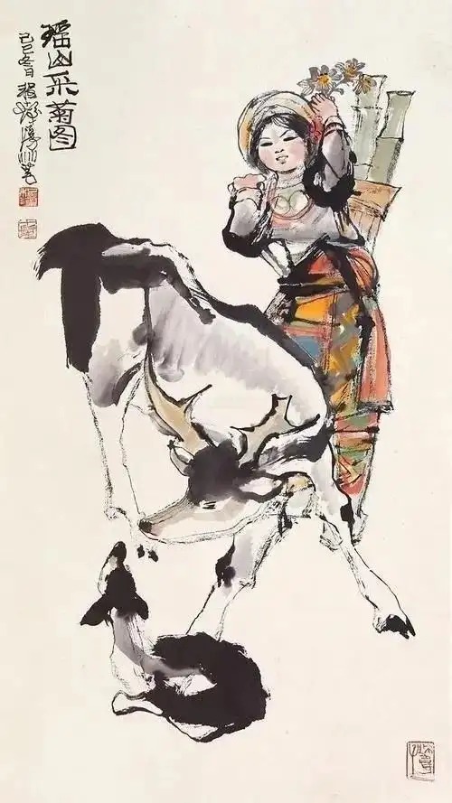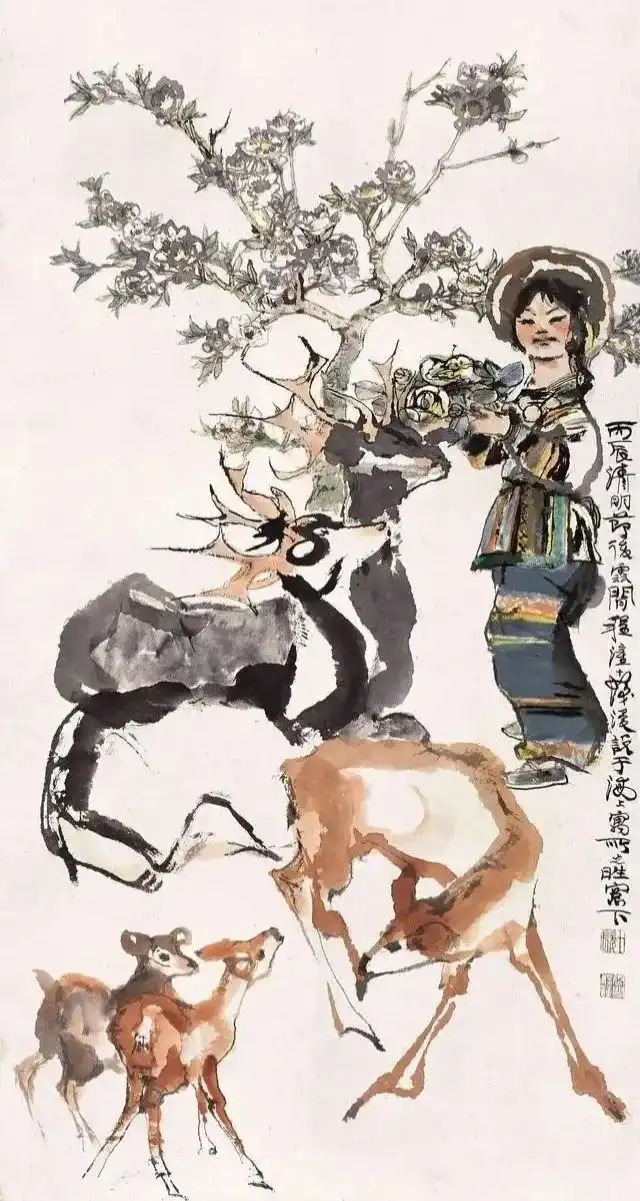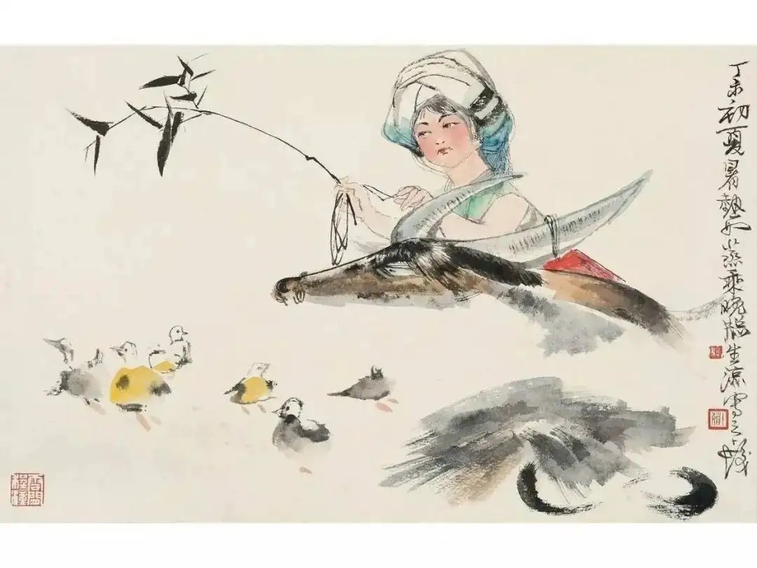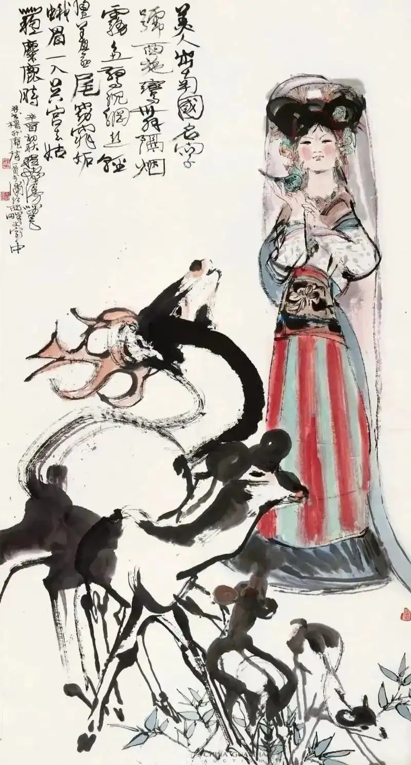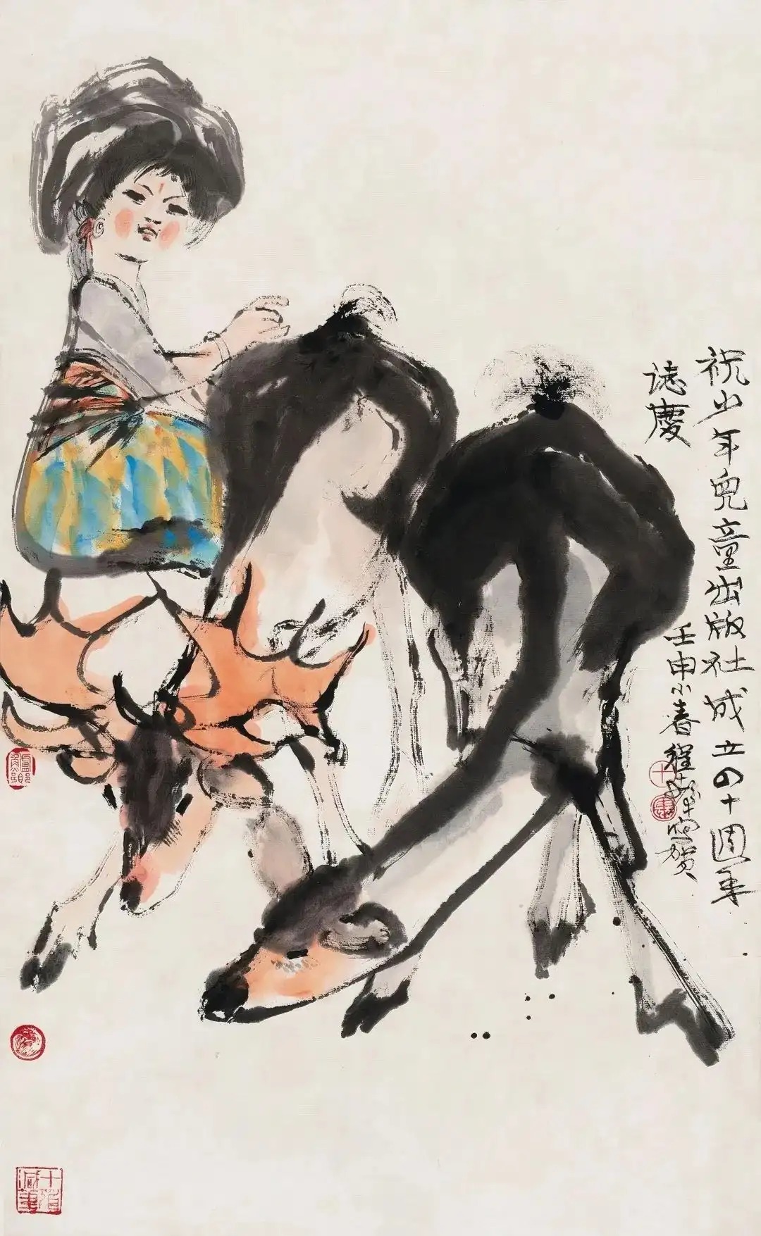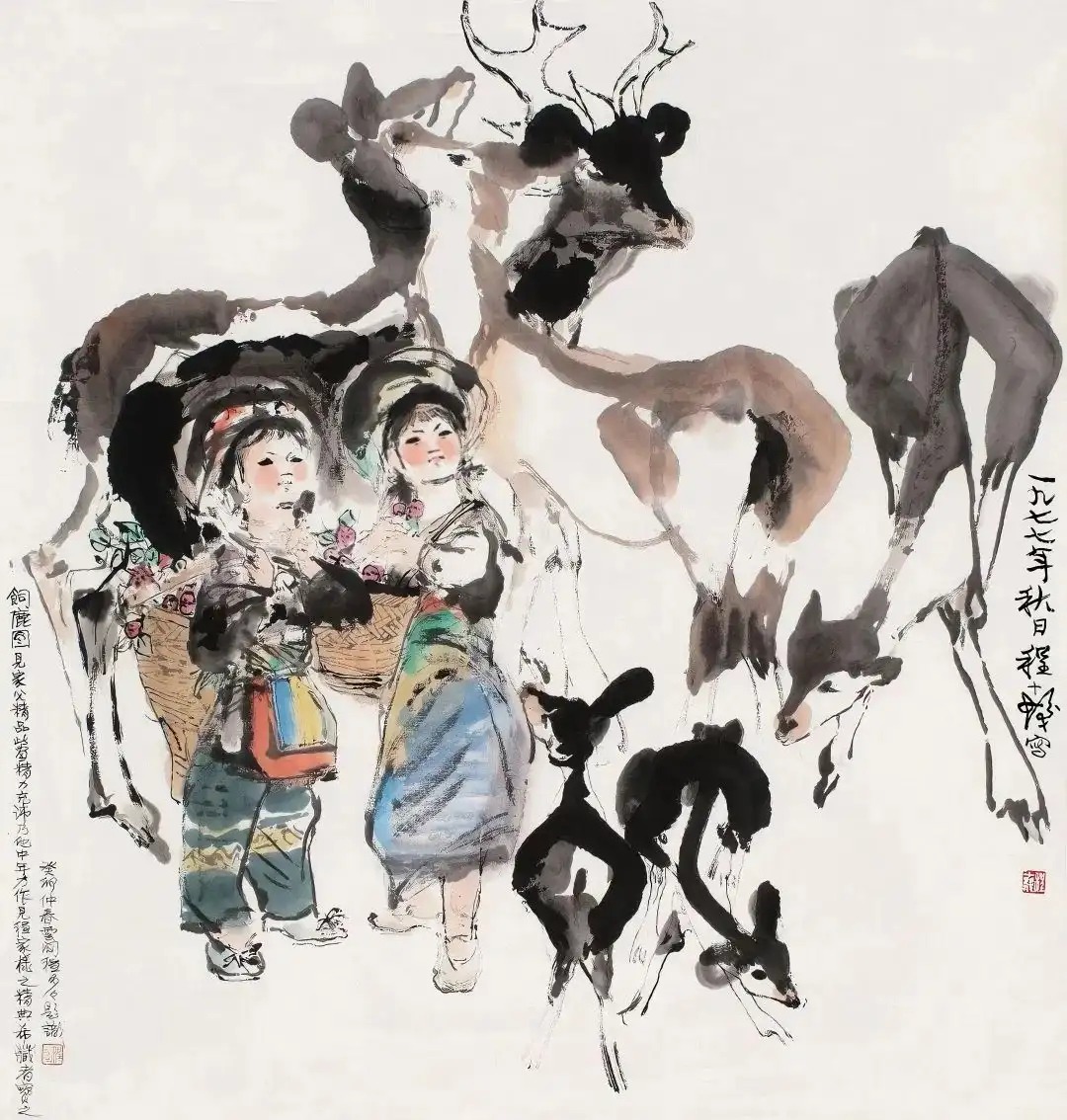 程十发(1921-2007),中国近现代美术史上独树一帜的艺术大师,其人物画以灵动飘逸的线条、明快鲜活的色彩和充满生命力的艺术表达,成为二十世纪中国画转型的重要标志。本文精选其100幅经典人物画作,带您走进这位海派艺术巨匠的笔墨世界。程十发笔下的少数民族形象,打破了传统工笔的拘谨,以写意线条勾勒出西南边陲的浪漫风情。《傣族少女》中,少女身姿如风中细柳,简练的墨色长裙与朱砂点缀的头饰形成鲜明对比,传递出热带雨林的生机;《高原之春》里藏族少女的羊皮袄以枯笔皴擦出粗犷质感,面颊的胭脂色却透出江南水乡的温婉,这正是画家'以线造型,以色传情'理念的完美诠释。在《芦笙舞》三联画中,画家大胆采用俯瞰视角,将苗家儿女的舞动身姿转化为流动的线条符号,笙管与裙摆的弧线相互呼应,构成视觉的交响乐。而《火把节》则运用泼墨技法渲染夜色,跳跃的橙色火光照亮彝族汉子的轮廓,展现出原始生命的张力。程十发对传统题材的再造令人耳目一新。《李太白醉酒图》突破历代白描范式,以倾斜构图表现诗仙的醉态,袍服上的飞白笔触仿佛带着酒香墨气;《钟馗夜巡图》中的捉鬼天师不再怒目圆睁,微醺的神态与蜷缩的小鬼构成戏剧性画面,透出画家对民间传说的幽默解读。《红楼十二钗》系列堪称文人画现代转型的典范。史湘云醉卧芍药裀的场景,花瓣以没骨法点染,人物衣纹却融入书法飞白笔意,传统工笔与写意的界限在此消弭。黛玉葬花的背影处理更具深意,大面积留白中仅以飘落的桃花暗示泪痕,开创了'以虚写哀'的新境。在现实题材创作中,程十发展现出艺术家的人文关怀。《采药姑娘》以赭石与花青的撞色表现山间晨雾,少女背篓中的草药以篆书笔法写出,将劳动之美提升至美学境界;《渔村新事》采用连环画式构图,渔民们修理渔网的动态通过衣纹走向自然串联,眼角笑纹的微妙刻画胜过千言万语。《茶馆记事》四条屏堪称市井生活百科全书,老茶客的紫砂壶、说书人的折扇、孩童手中的糖画,每个细节都是时代印记。画家独创的'游丝描'在此臻于化境,细若发丝的线条勾勒出百态人生,让水墨画拥有了油画的叙事容量。晚年的程十发开启更具突破性的艺术实验。《敦煌飞天变奏曲》将壁画元素解构重组,菩萨衣带化作几何色块,却通过墨色浓淡保持东方韵味;《马戏团》系列借鉴立体主义手法,小丑的服装碎片化处理中仍可见书法运笔的节奏。在《自画像》中,画家以朱砂勾勒面部轮廓,背景的西洋红与群青碰撞出超现实意境,题跋'我与我周旋久,宁作我'的碑体书法,完成传统文人画精神内核的现代转译。这种'借西润中'的探索,为水墨人物画开辟了新航道。从雪域高原到江南水乡,从历史长河到烟火人间,程十发用100幅画作构建起一个贯通古今的艺术宇宙。他的笔墨既是传统的守护者,又是创新的破壁人,那些舞动的线条与跳跃的色彩,至今仍在诉说着'笔墨当随时代'的真谛。当我们驻足这些画作前,不仅能看见人物形象的生动气韵,更能触摸到一个时代文化转型的脉搏跳动。