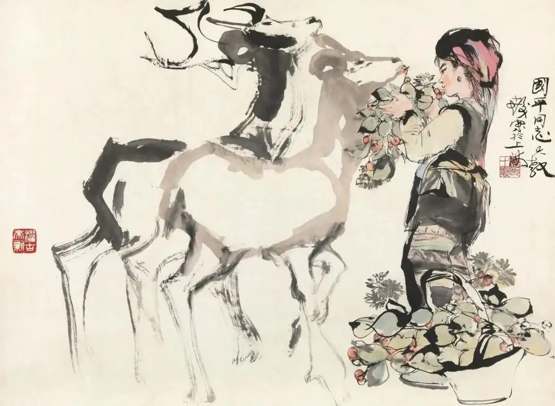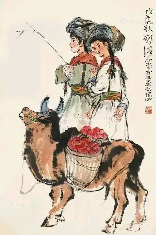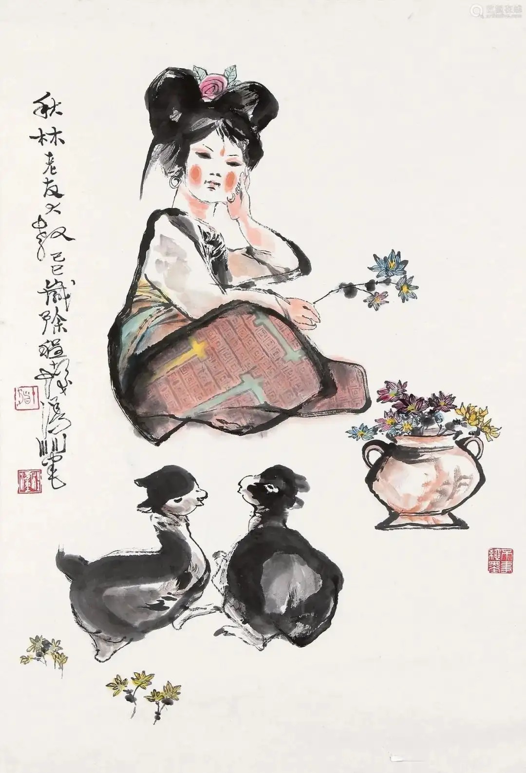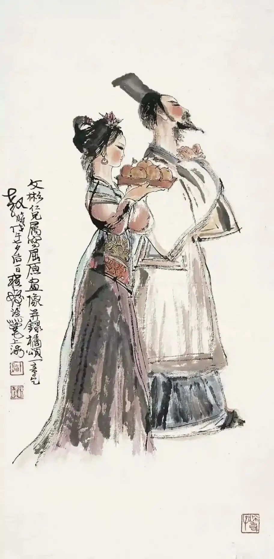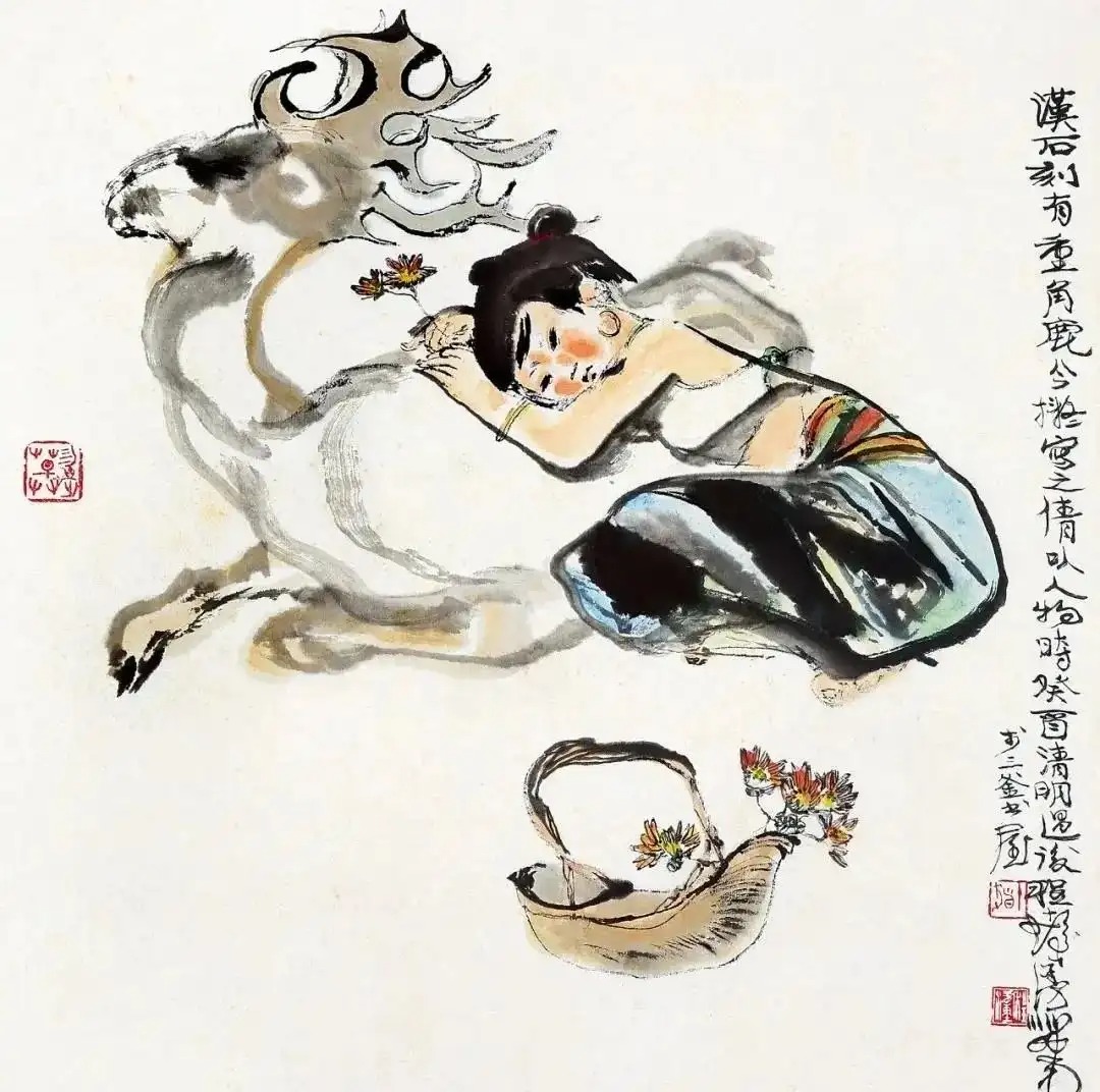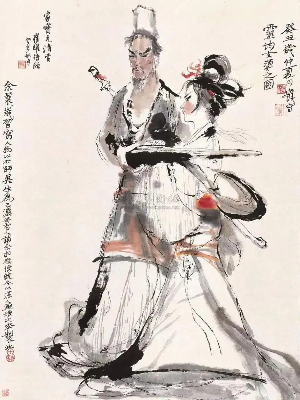 程十发(1921-2007),中国近现代美术史上独树一帜的艺术大师,其人物画以灵动飘逸的线条、明快鲜活的色彩和充满生命力的艺术表达,成为二十世纪中国画转型的重要标志。本文精选其100幅经典人物画作,带您走进这位海派艺术巨匠的笔墨世界。程十发笔下的少数民族形象,打破了传统工笔的拘谨,以写意线条勾勒出西南边陲的浪漫风情。《傣族少女》中,少女身姿如风中细柳,简练的墨色长裙与朱砂点缀的头饰形成鲜明对比,传递出热带雨林的生机;《高原之春》里藏族少女的羊皮袄以枯笔皴擦出粗犷质感,面颊的胭脂色却透出江南水乡的温婉,这正是画家'以线造型,以色传情'理念的完美诠释。在《芦笙舞》三联画中,画家大胆采用俯瞰视角,将苗家儿女的舞动身姿转化为流动的线条符号,笙管与裙摆的弧线相互呼应,构成视觉的交响乐。而《火把节》则运用泼墨技法渲染夜色,跳跃的橙色火光照亮彝族汉子的轮廓,展现出原始生命的张力。程十发对传统题材的再造令人耳目一新。《李太白醉酒图》突破历代白描范式,以倾斜构图表现诗仙的醉态,袍服上的飞白笔触仿佛带着酒香墨气;《钟馗夜巡图》中的捉鬼天师不再怒目圆睁,微醺的神态与蜷缩的小鬼构成戏剧性画面,透出画家对民间传说的幽默解读。《红楼十二钗》系列堪称文人画现代转型的典范。史湘云醉卧芍药裀的场景,花瓣以没骨法点染,人物衣纹却融入书法飞白笔意,传统工笔与写意的界限在此消弭。黛玉葬花的背影处理更具深意,大面积留白中仅以飘落的桃花暗示泪痕,开创了'以虚写哀'的新境。在现实题材创作中,程十发展现出艺术家的人文关怀。《采药姑娘》以赭石与花青的撞色表现山间晨雾,少女背篓中的草药以篆书笔法写出,将劳动之美提升至美学境界;《渔村新事》采用连环画式构图,渔民们修理渔网的动态通过衣纹走向自然串联,眼角笑纹的微妙刻画胜过千言万语。《茶馆记事》四条屏堪称市井生活百科全书,老茶客的紫砂壶、说书人的折扇、孩童手中的糖画,每个细节都是时代印记。画家独创的'游丝描'在此臻于化境,细若发丝的线条勾勒出百态人生,让水墨画拥有了油画的叙事容量。晚年的程十发开启更具突破性的艺术实验。《敦煌飞天变奏曲》将壁画元素解构重组,菩萨衣带化作几何色块,却通过墨色浓淡保持东方韵味;《马戏团》系列借鉴立体主义手法,小丑的服装碎片化处理中仍可见书法运笔的节奏。在《自画像》中,画家以朱砂勾勒面部轮廓,背景的西洋红与群青碰撞出超现实意境,题跋'我与我周旋久,宁作我'的碑体书法,完成传统文人画精神内核的现代转译。这种'借西润中'的探索,为水墨人物画开辟了新航道。从雪域高原到江南水乡,从历史长河到烟火人间,程十发用100幅画作构建起一个贯通古今的艺术宇宙。他的笔墨既是传统的守护者,又是创新的破壁人,那些舞动的线条与跳跃的色彩,至今仍在诉说着'笔墨当随时代'的真谛。当我们驻足这些画作前,不仅能看见人物形象的生动气韵,更能触摸到一个时代文化转型的脉搏跳动。