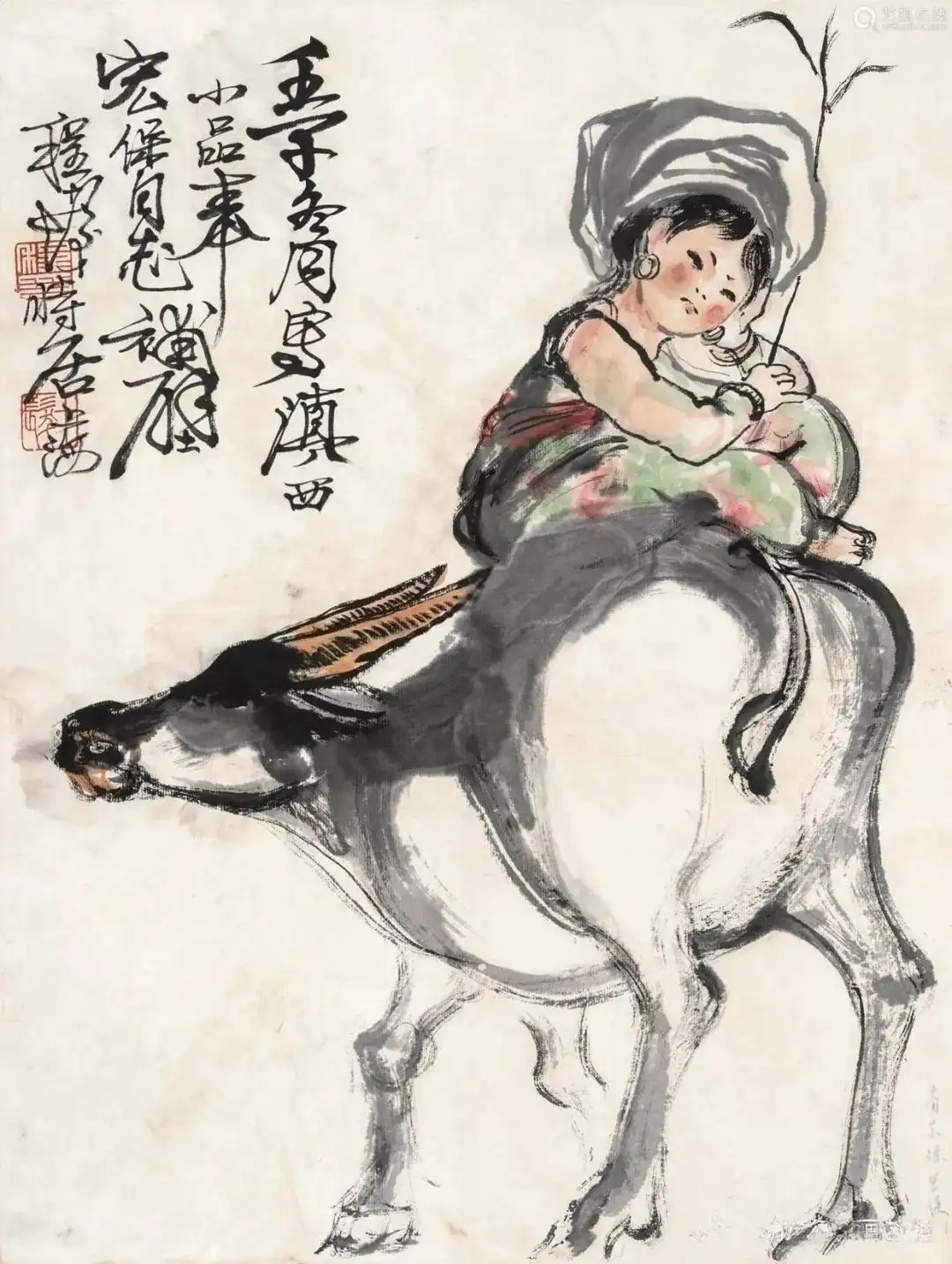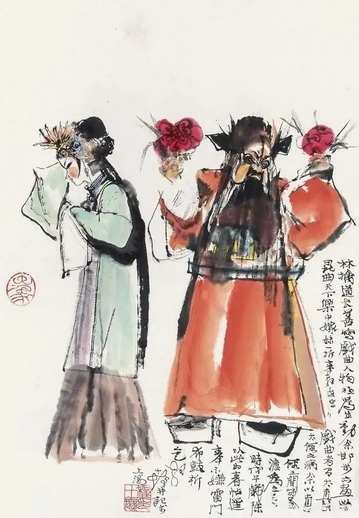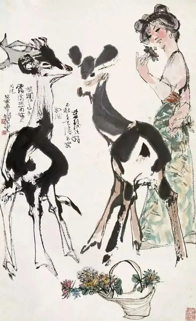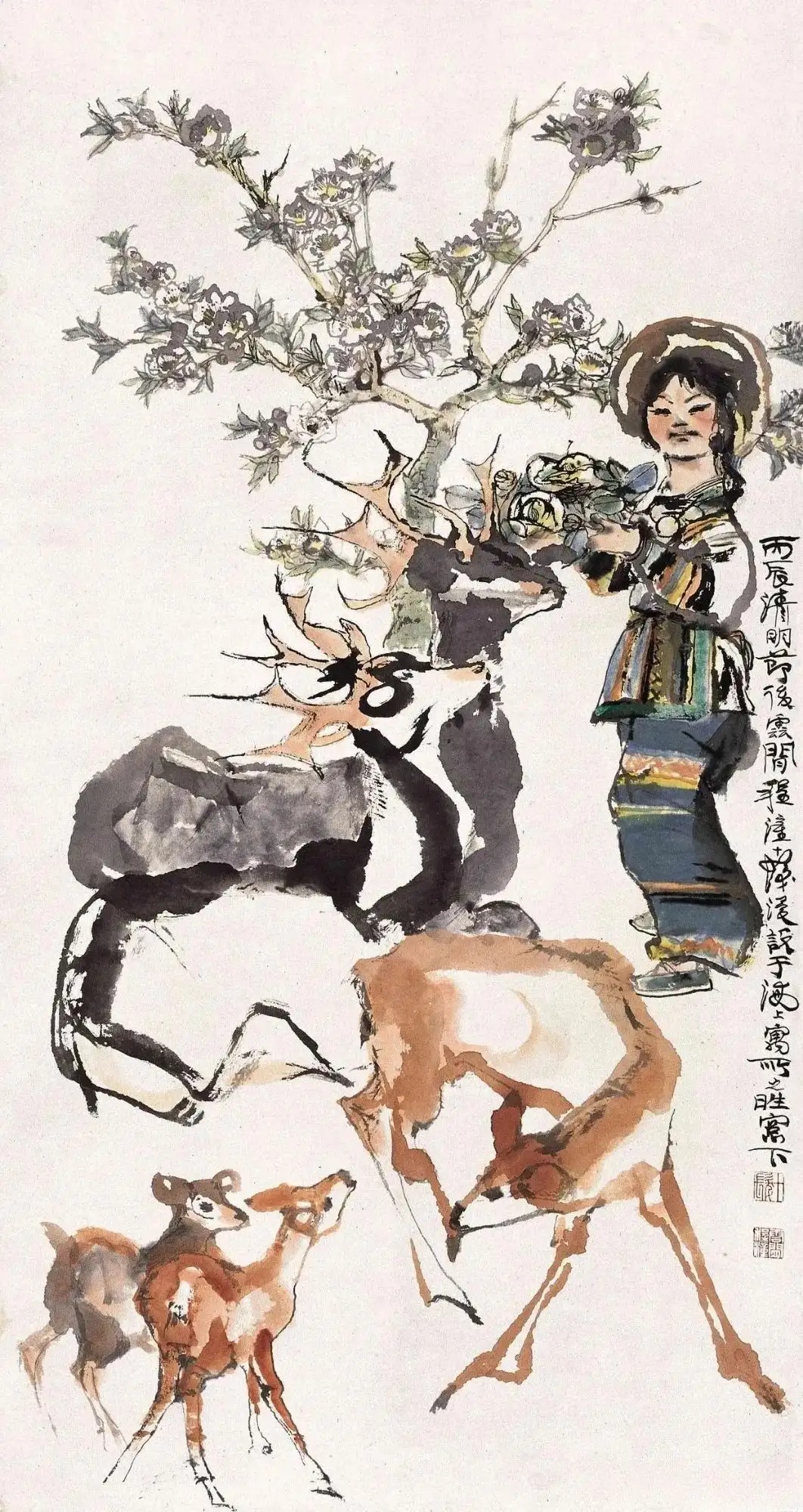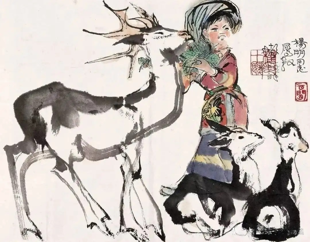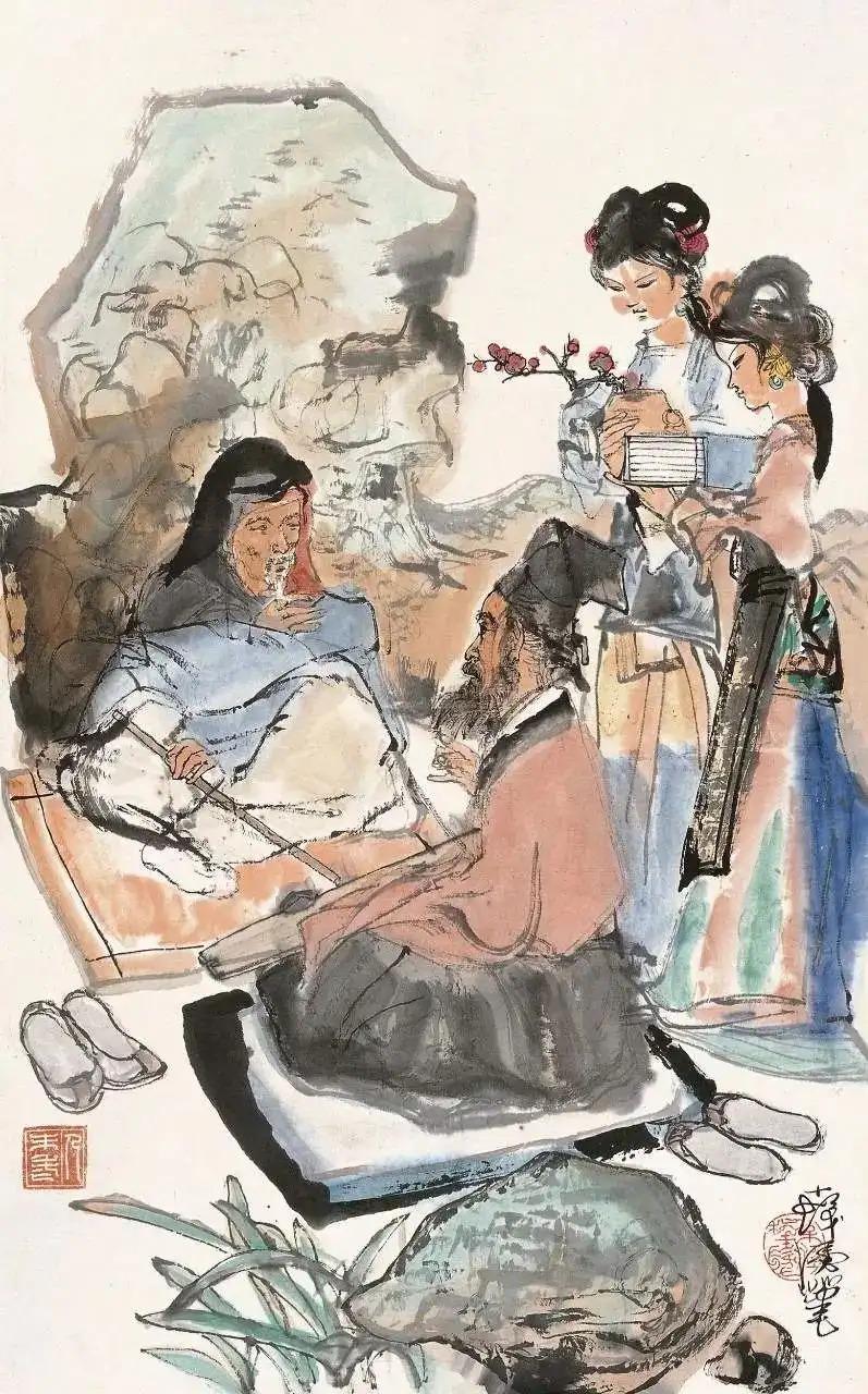 程十发(1921-2007),中国近现代美术史上独树一帜的艺术大师,其人物画以灵动飘逸的线条、明快鲜活的色彩和充满生命力的艺术表达,成为二十世纪中国画转型的重要标志。本文精选其100幅经典人物画作,带您走进这位海派艺术巨匠的笔墨世界。程十发笔下的少数民族形象,打破了传统工笔的拘谨,以写意线条勾勒出西南边陲的浪漫风情。《傣族少女》中,少女身姿如风中细柳,简练的墨色长裙与朱砂点缀的头饰形成鲜明对比,传递出热带雨林的生机;《高原之春》里藏族少女的羊皮袄以枯笔皴擦出粗犷质感,面颊的胭脂色却透出江南水乡的温婉,这正是画家'以线造型,以色传情'理念的完美诠释。在《芦笙舞》三联画中,画家大胆采用俯瞰视角,将苗家儿女的舞动身姿转化为流动的线条符号,笙管与裙摆的弧线相互呼应,构成视觉的交响乐。而《火把节》则运用泼墨技法渲染夜色,跳跃的橙色火光照亮彝族汉子的轮廓,展现出原始生命的张力。程十发对传统题材的再造令人耳目一新。《李太白醉酒图》突破历代白描范式,以倾斜构图表现诗仙的醉态,袍服上的飞白笔触仿佛带着酒香墨气;《钟馗夜巡图》中的捉鬼天师不再怒目圆睁,微醺的神态与蜷缩的小鬼构成戏剧性画面,透出画家对民间传说的幽默解读。《红楼十二钗》系列堪称文人画现代转型的典范。史湘云醉卧芍药裀的场景,花瓣以没骨法点染,人物衣纹却融入书法飞白笔意,传统工笔与写意的界限在此消弭。黛玉葬花的背影处理更具深意,大面积留白中仅以飘落的桃花暗示泪痕,开创了'以虚写哀'的新境。在现实题材创作中,程十发展现出艺术家的人文关怀。《采药姑娘》以赭石与花青的撞色表现山间晨雾,少女背篓中的草药以篆书笔法写出,将劳动之美提升至美学境界;《渔村新事》采用连环画式构图,渔民们修理渔网的动态通过衣纹走向自然串联,眼角笑纹的微妙刻画胜过千言万语。《茶馆记事》四条屏堪称市井生活百科全书,老茶客的紫砂壶、说书人的折扇、孩童手中的糖画,每个细节都是时代印记。画家独创的'游丝描'在此臻于化境,细若发丝的线条勾勒出百态人生,让水墨画拥有了油画的叙事容量。晚年的程十发开启更具突破性的艺术实验。《敦煌飞天变奏曲》将壁画元素解构重组,菩萨衣带化作几何色块,却通过墨色浓淡保持东方韵味;《马戏团》系列借鉴立体主义手法,小丑的服装碎片化处理中仍可见书法运笔的节奏。在《自画像》中,画家以朱砂勾勒面部轮廓,背景的西洋红与群青碰撞出超现实意境,题跋'我与我周旋久,宁作我'的碑体书法,完成传统文人画精神内核的现代转译。这种'借西润中'的探索,为水墨人物画开辟了新航道。从雪域高原到江南水乡,从历史长河到烟火人间,程十发用100幅画作构建起一个贯通古今的艺术宇宙。他的笔墨既是传统的守护者,又是创新的破壁人,那些舞动的线条与跳跃的色彩,至今仍在诉说着'笔墨当随时代'的真谛。当我们驻足这些画作前,不仅能看见人物形象的生动气韵,更能触摸到一个时代文化转型的脉搏跳动。