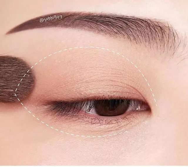 用刷子或手指轻轻按压眼皮,摸到眉骨以下的凹陷处就是眼窝,在这个区域上色,会显得眼睛深邃自然。