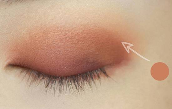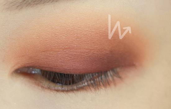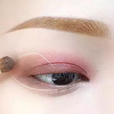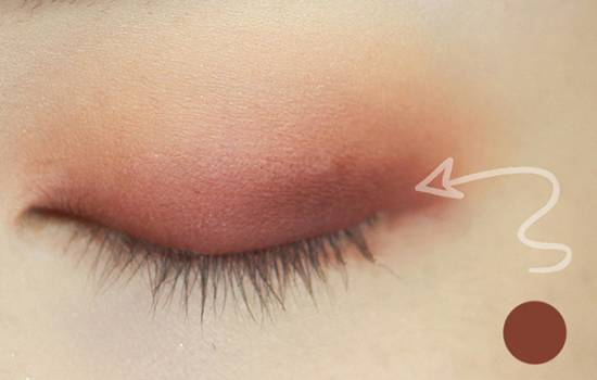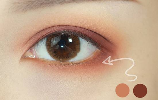 再用较深色涂抹在双眼皮的褶皱里,作为眼线色